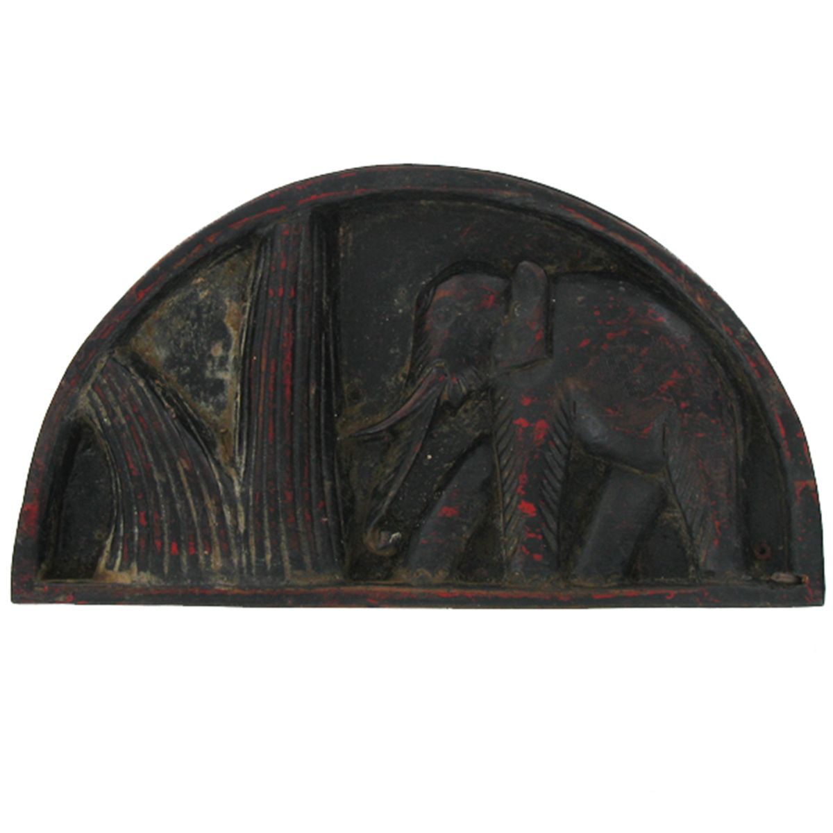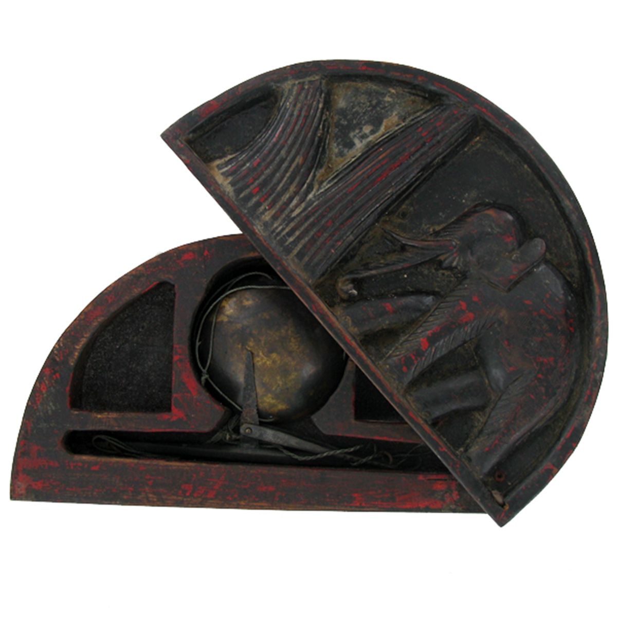 Brass Set In Hand Carved Elephant; Half Moon Teak Box; Early 1900's; Very Good Condition; 9"