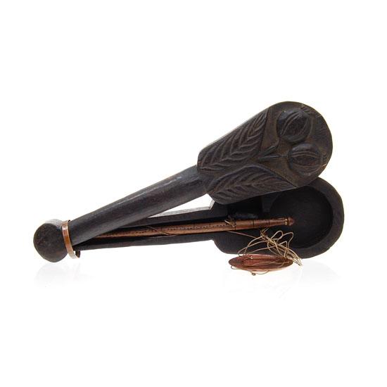 Brass Set In Hand Carved Elephant violin Teak Box; Early 1900;s; Excellent Condition; "14
