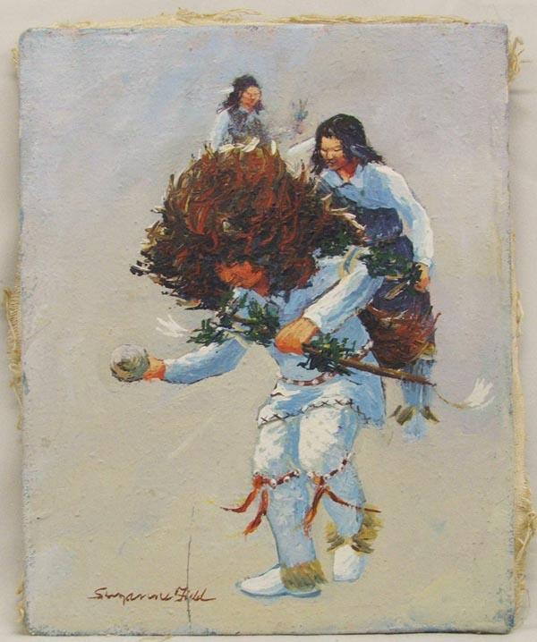 Antique Original Painting By Suzanne Field, on canvas, measures approx. 10'' x 8''. Canvas stapled to wood frame. SHI $20.