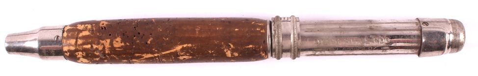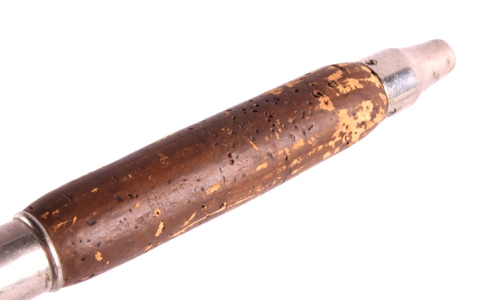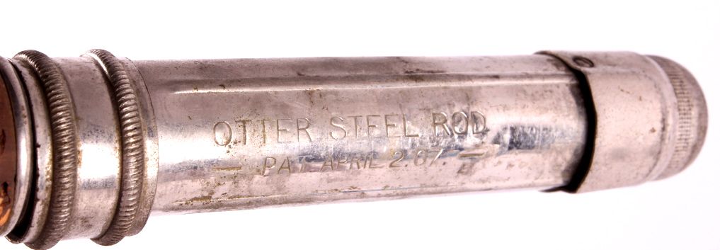 This lot features an antique Otter Steel Rod fly rod. The fly rod is made from steel with brass ferrules. The handle is made from cork and aluminum. The reel seat is marked "Otter Steel Rod Pat. April 2, 07". The fly rod is in very good condition. It comes with the original cloth sock. The fly rod measures 99.5" long.