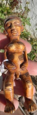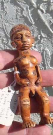 Antique ox bone carving approximately 4 x 1 x 1 inch. This has lots of tattooing on the front of body. Tag indicates that this is Yaure Tribe sub tribe of Baule. Sold in 1970 for $600.00. Shipping $20.00 Excellent Condition