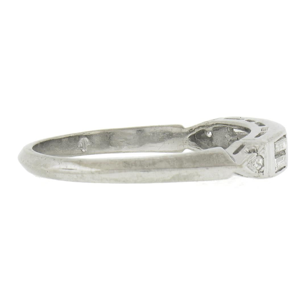 An antique solid palladium band ring, with 8 single cut natural diamonds (G-I - VS1-SI1 ; 0.08ctw), and 4 baguette cut natural diamonds (G-I - VS1-SI1 ; 0.12ctw ). The ring is size 7.0, weighs a total of 2.39 grams, and measures 3.4mm wide.