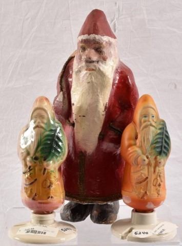 Antique Paper Mache Santa Clause & 2 Vintage Bulbs