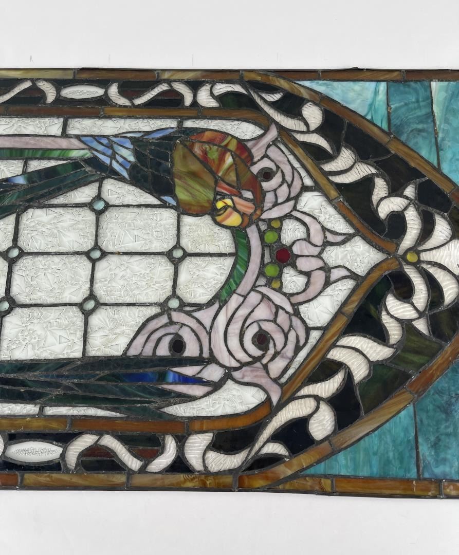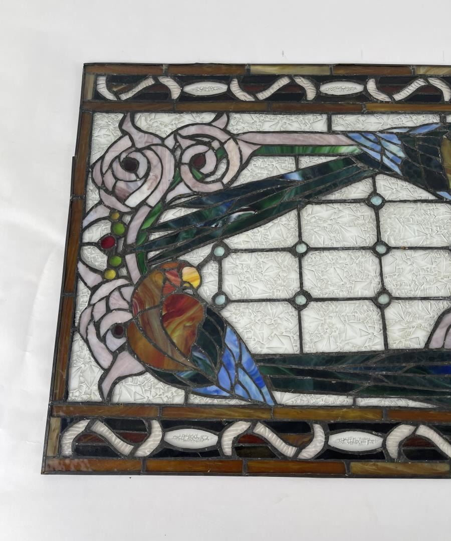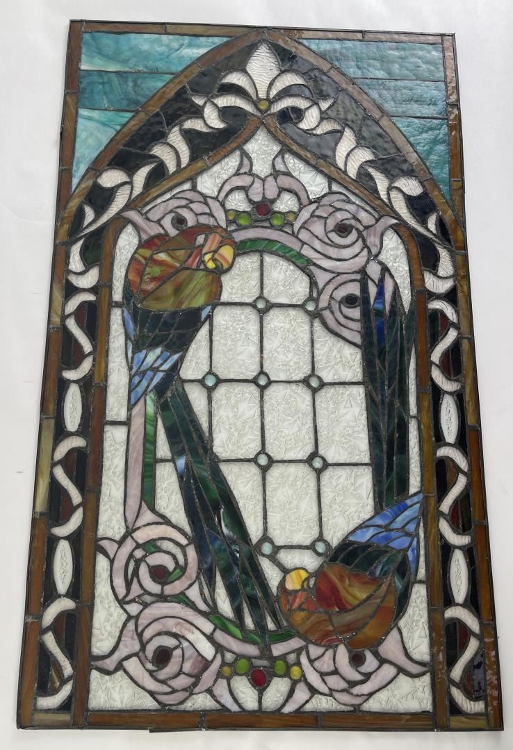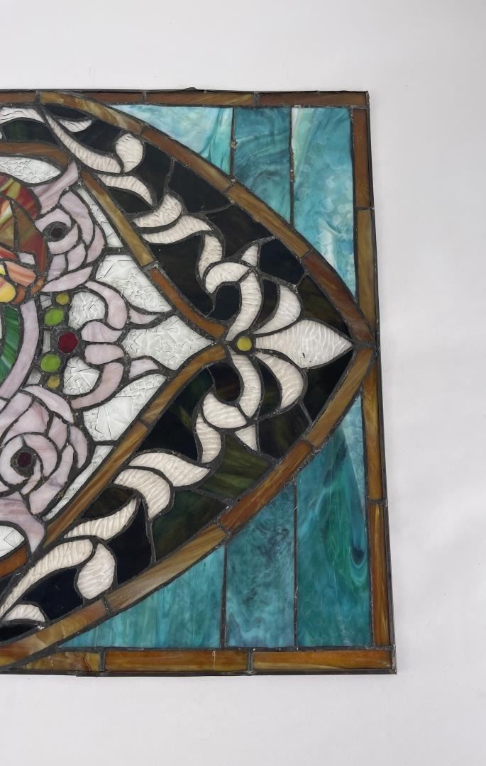 Very nice old window. Great hard to find subject matter. Very fragile. 20" by 34".