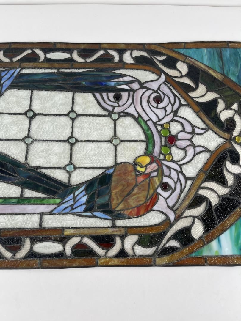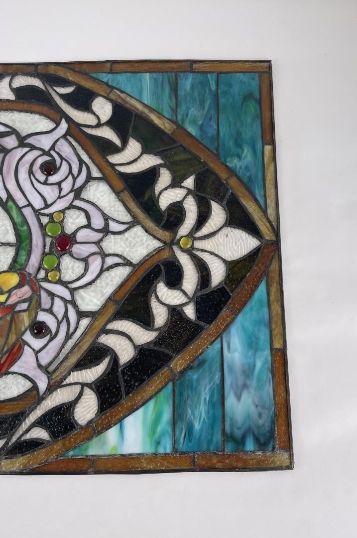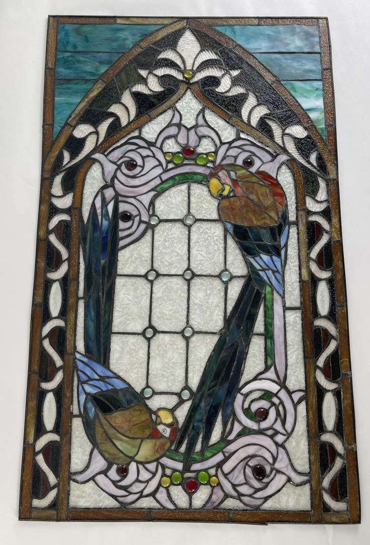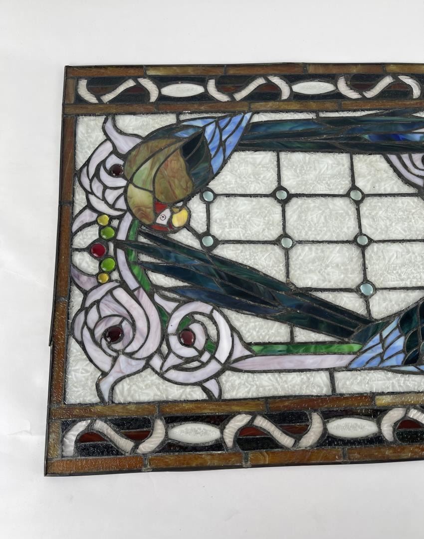Very nice old window. Great hard to find subject matter. Very fragile. 20" by 34".