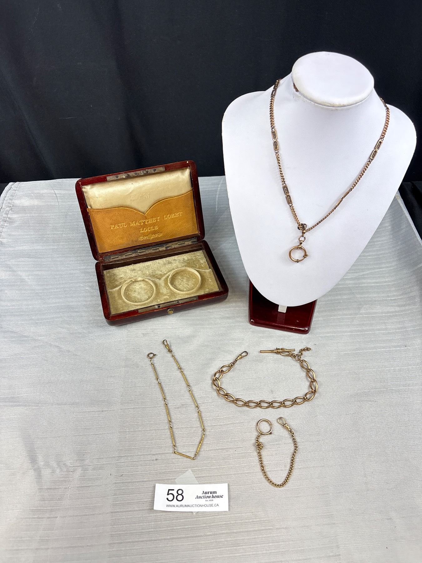 Antique Paul Matthey Doret Locle (Pocket Watch) Box + GF Watch Chains