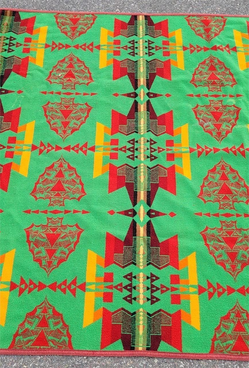 Very nice double sided Pendleton. Early version. Has a few moth holes and several small areas of staining as shown. 61" by 74".