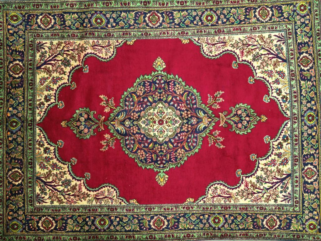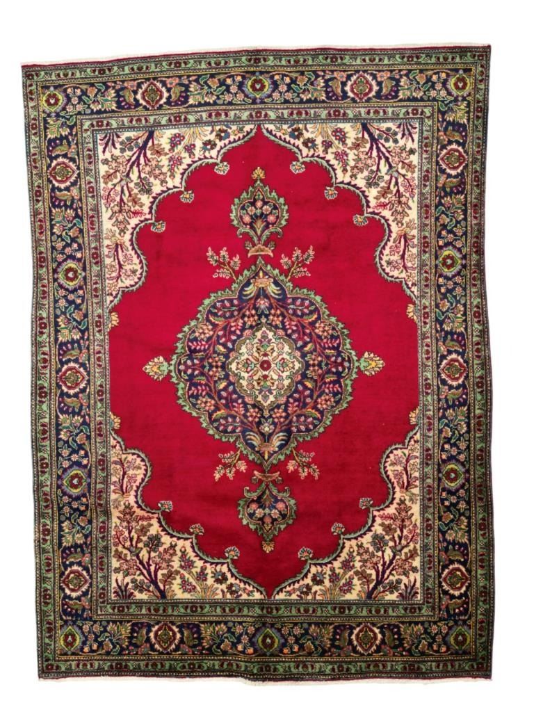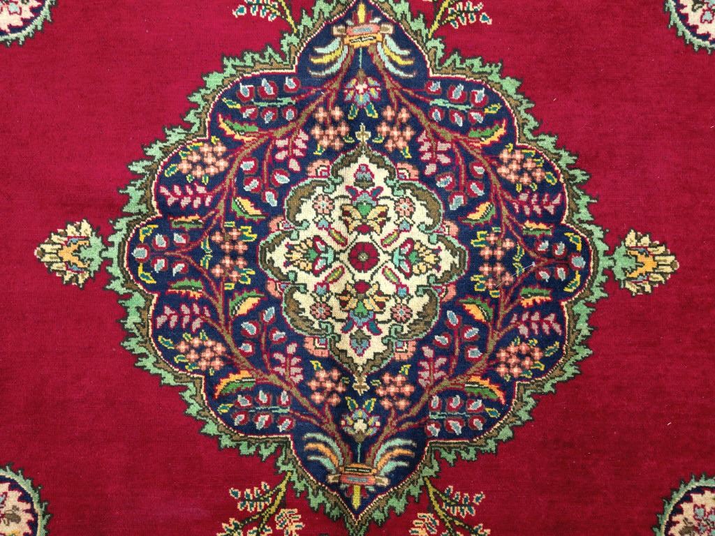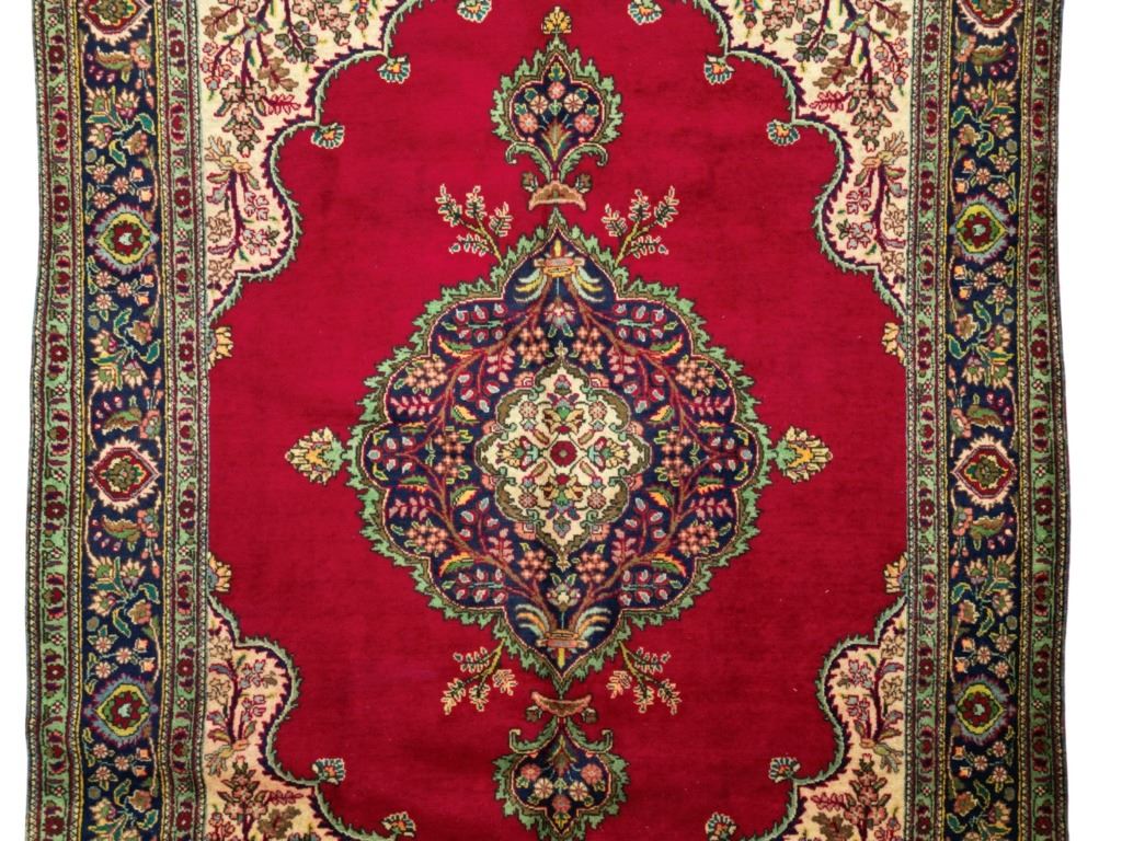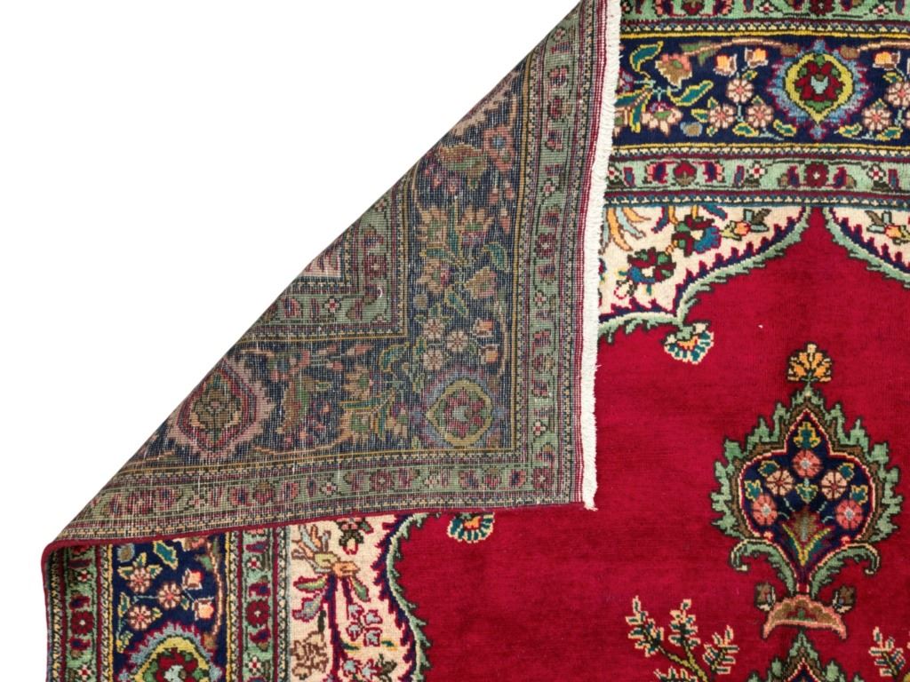 For your consideration is an Antique Persian Tabriz Hand-Knotted Rug, circa 1920s. Presented in this lot is an Antique Persian Serapi Hand-knotted Wool Runner Rug. The rug features a fine detailed design, bright colours, and a tight weave, circa early 20th century. The Heriz rug is one of the most well-known styles of Persian rugs, known for its unique styles and patterns. Serapis, for example, have been considered the finest grade of Heriz since the beginning of the 20th century. Their name is connected to the Serab village, where they originally came from. This category of Persian carpets has the finest handmade vintage and antique rugs. Rug enthusiasts worldwide still purchase these ancient antique Serapi carpets because they still ooze grandeur and an aura of complete magnificence. The rugs are produced in the city of Heriz, which is located in northwestern Iran near the city of Tabriz. Traces of copper in the drinking water of sheep produces high quality wool that is far more resilient than wool from other areas. The Heriz Carpet is the only carpet in the world where stories of the Old times are woven. The popularity of a Serapi carpet may be attributed to several beautiful qualities of the rug, but most significantly to its alluring hues and color schemes. The rug displays wonderfully and professionally handcrafted wool construction and shows geometric floral patterns along the borders, with the centre of the rug showing a large centre geometric medallion against a rich red background, which sits with predominately cream white colour floral corners. Rug colours include red, rose, forest green, yellow and greyish blue throughout the piece, cream coloured fringe on each end. The rug shows very nice condition overall, with little to no wear. Measures 84"W x 113"L S504