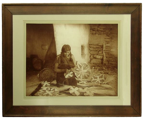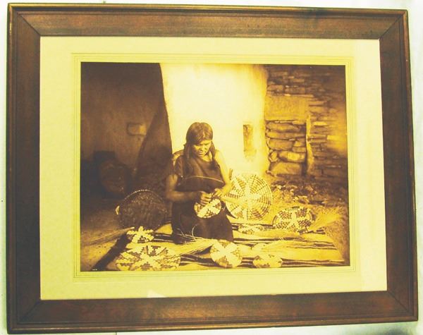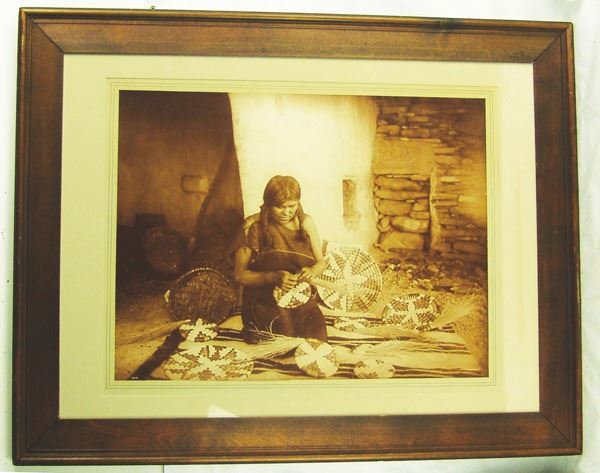 Large and impressive brown tone print "A Hopi Basket Weaver" by Detroit Publishing. Good condition, small scratch, in custom, period frame.Ca. 191017" x 22" (25" x 31")