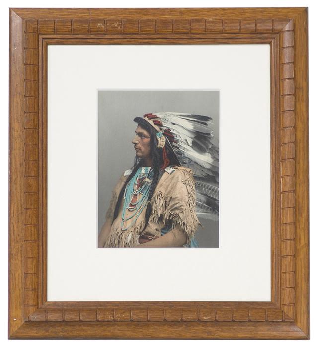Circa 1903, Famous photo by Detroit Photographic Co., titled (in gold) "54059 Chief Paupuk Keewis, Iroquois Adopted By the Ojibwas". 8-1/2" x 6-1/2" (18" x 16" framed)