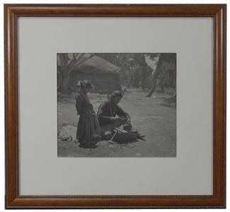 Karl Moon, Large, beautifully framed black and white photograph of a Navajo silversmith and his daughter. 8" x 9" (17" x 15" framed)