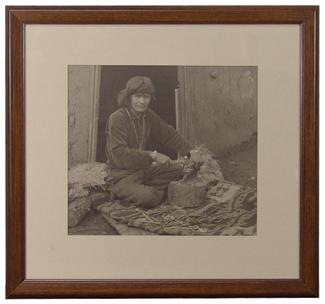 Karl Moon, Large, beautifully framed black and white photograph of a Navajo silversmith and all of his tools. 11 x 12" (19" x 20" framed)