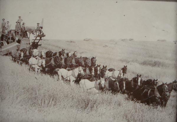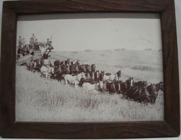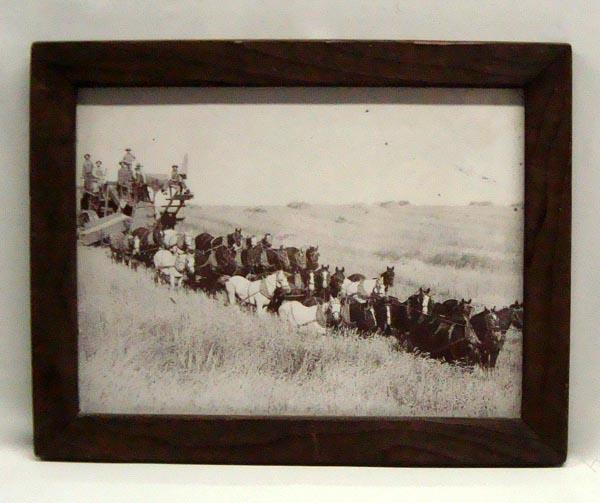 Antique Photographic Print of Ranchhands, Depicts Scene of Combine and Horses. 15.5'' x 11''. Rustic Wooden Frame. Buyers Pay Actual Shipping and Handling Charges(see terms and conditions for more information).