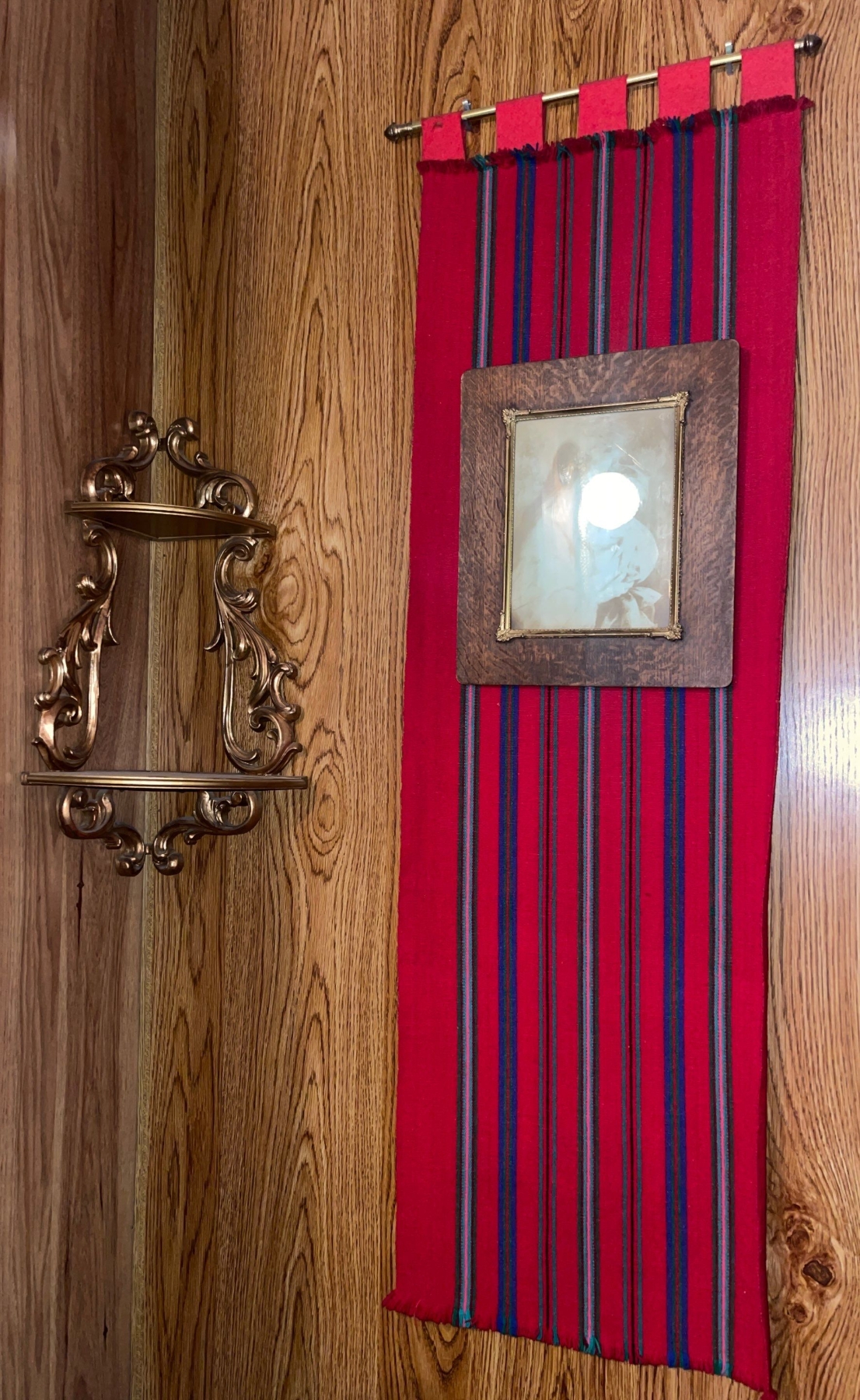 Antique Picture + Frame w/ Tapestry & Corner Shelf