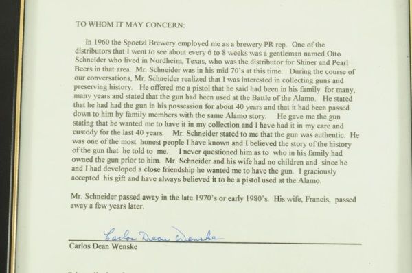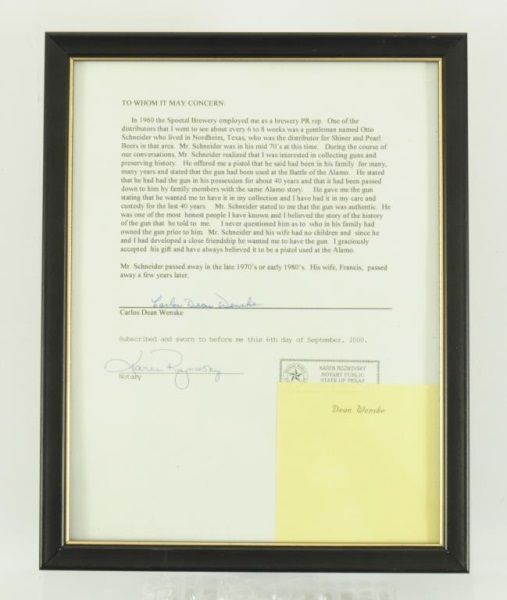 Period converted from flintlock to percussion. With letter attibuting it to the Battle of the Alamo.
