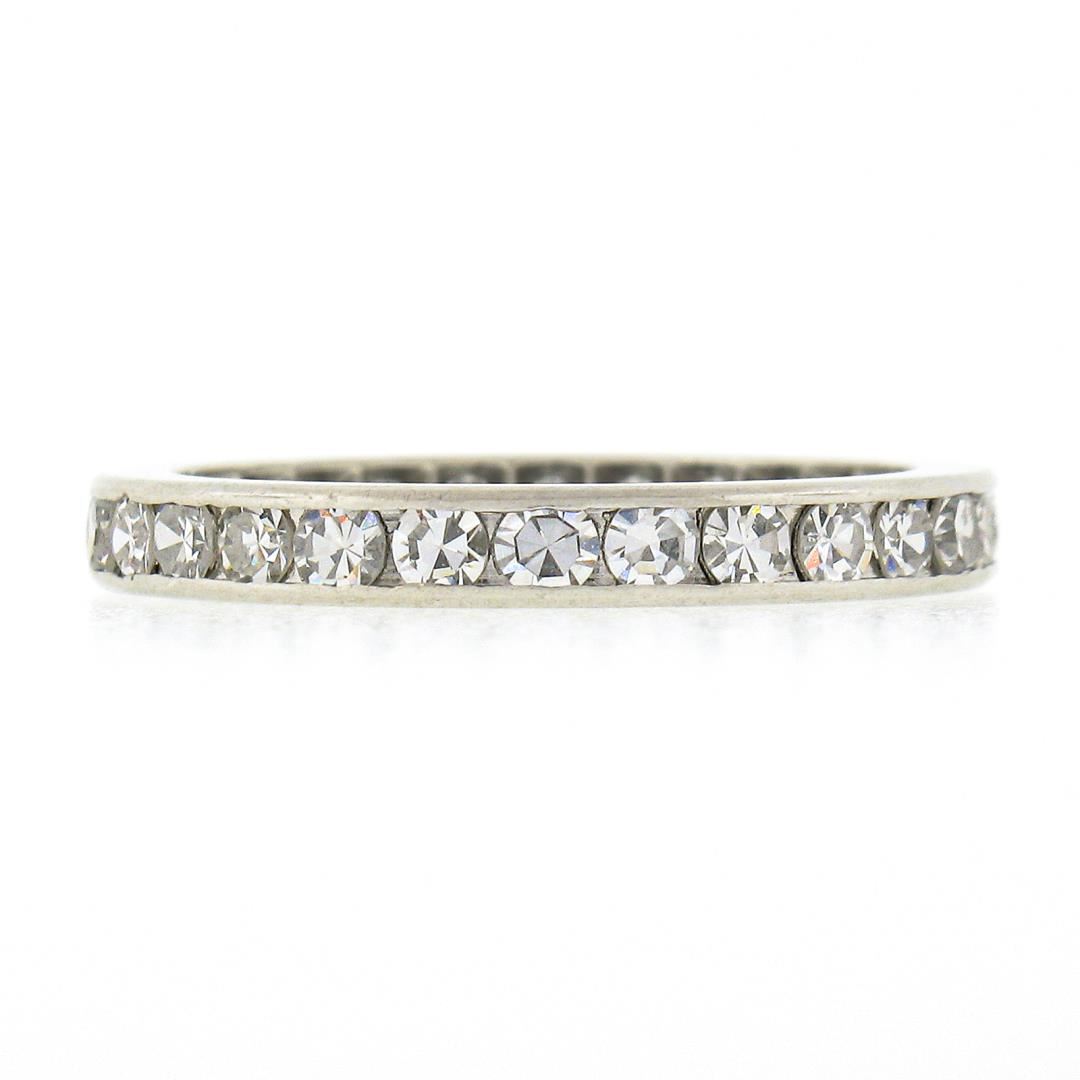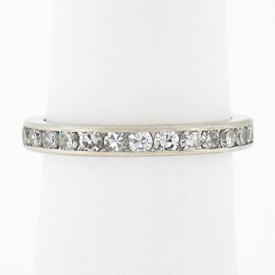 An antique solid platinum eternity band ring, with 28 old single cut natural diamonds (G/H - VS1/VS2 ; 1ctw). The ring is size 6.0, weighs a total of 3.27 grams, and measures 2.6mm wide.