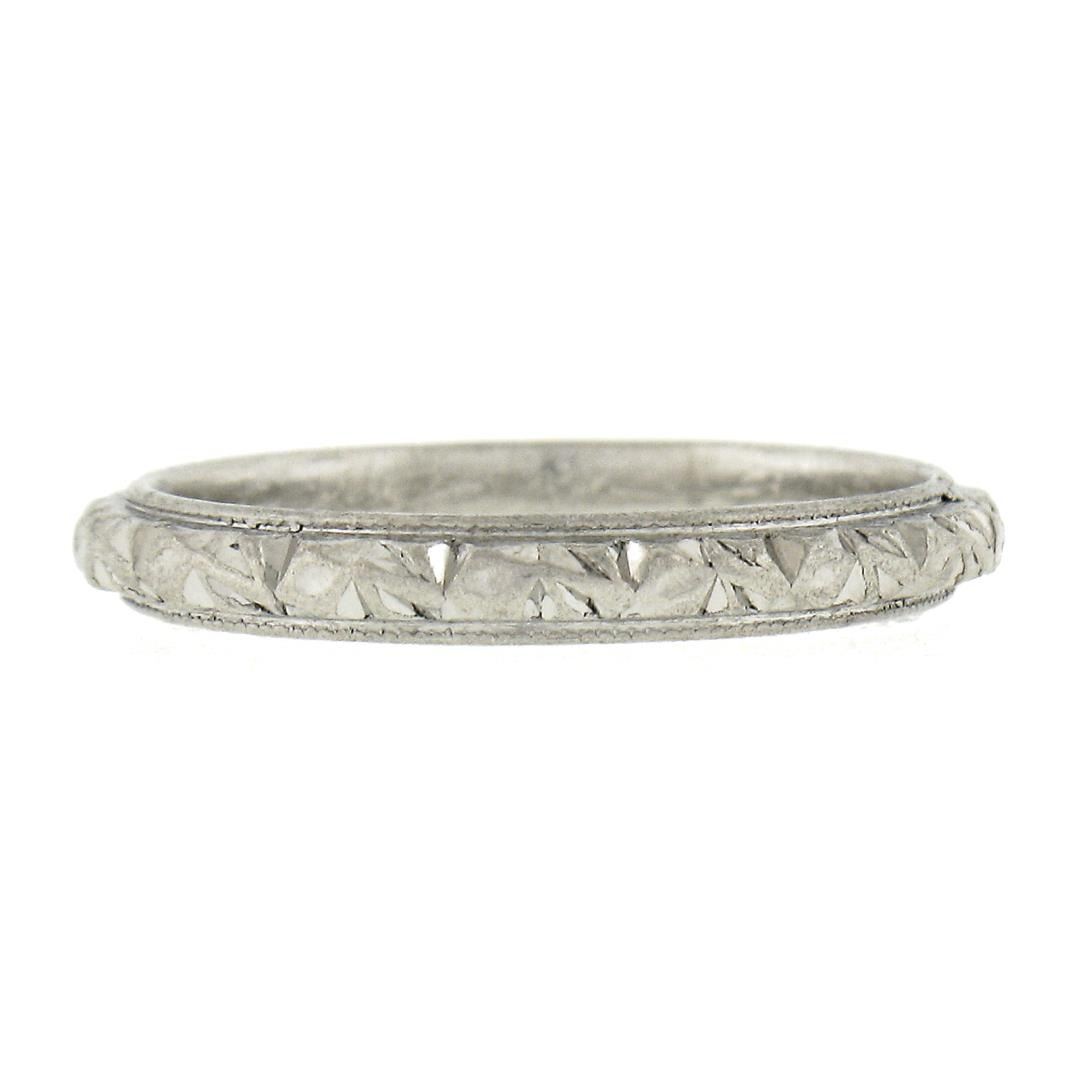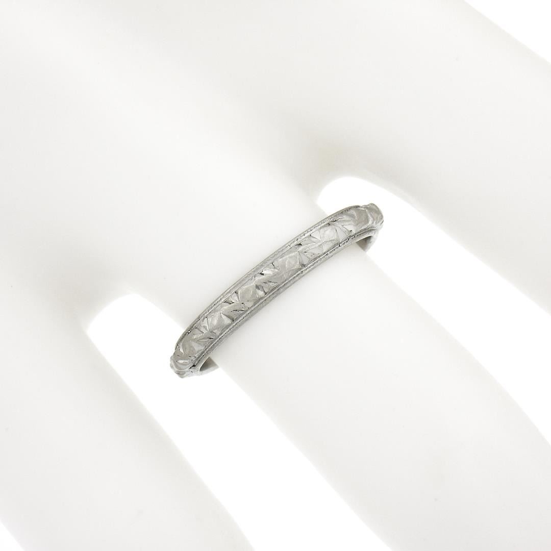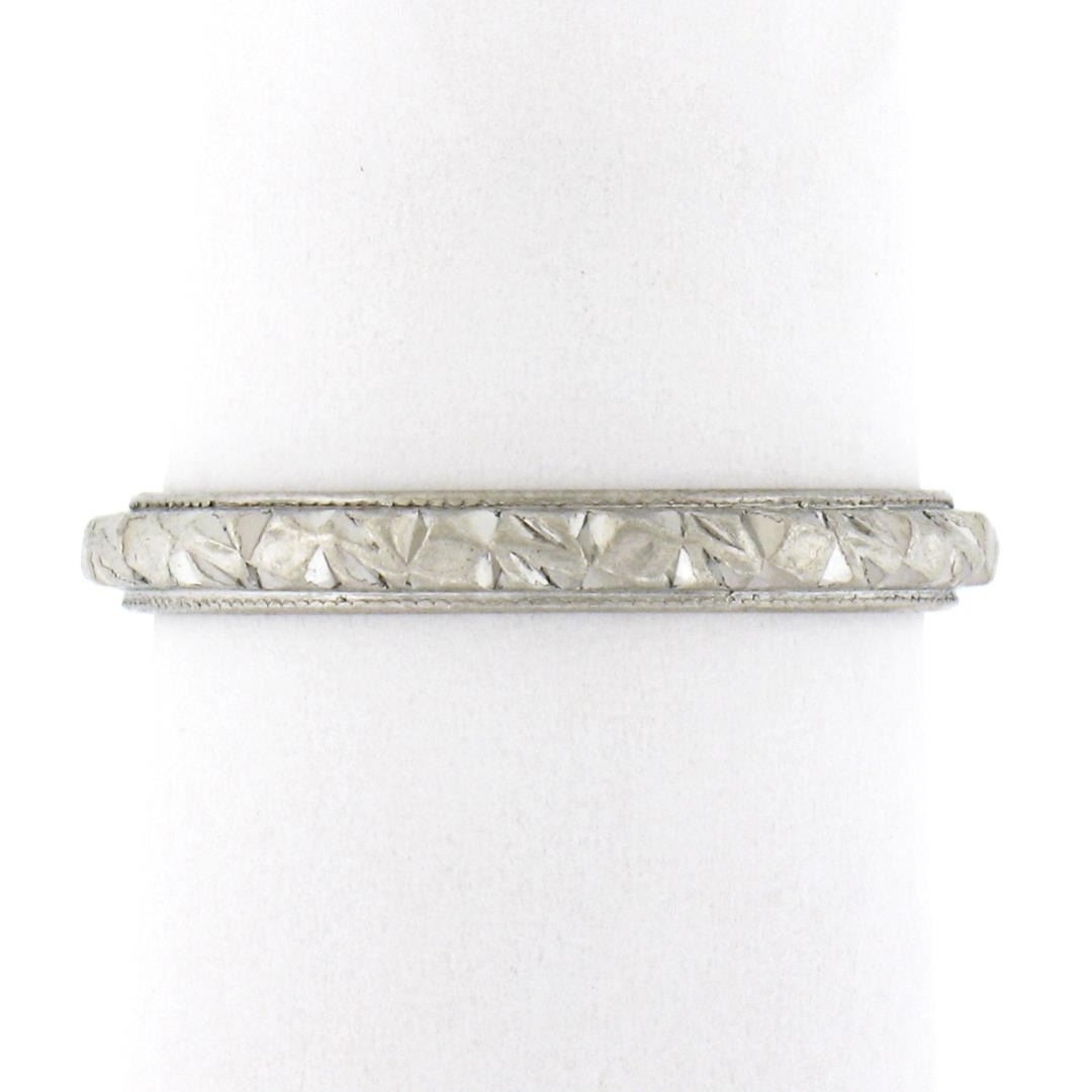 Antique Platinum 2.6mm Detailed Textured Work Eternity Stackable Band Ring