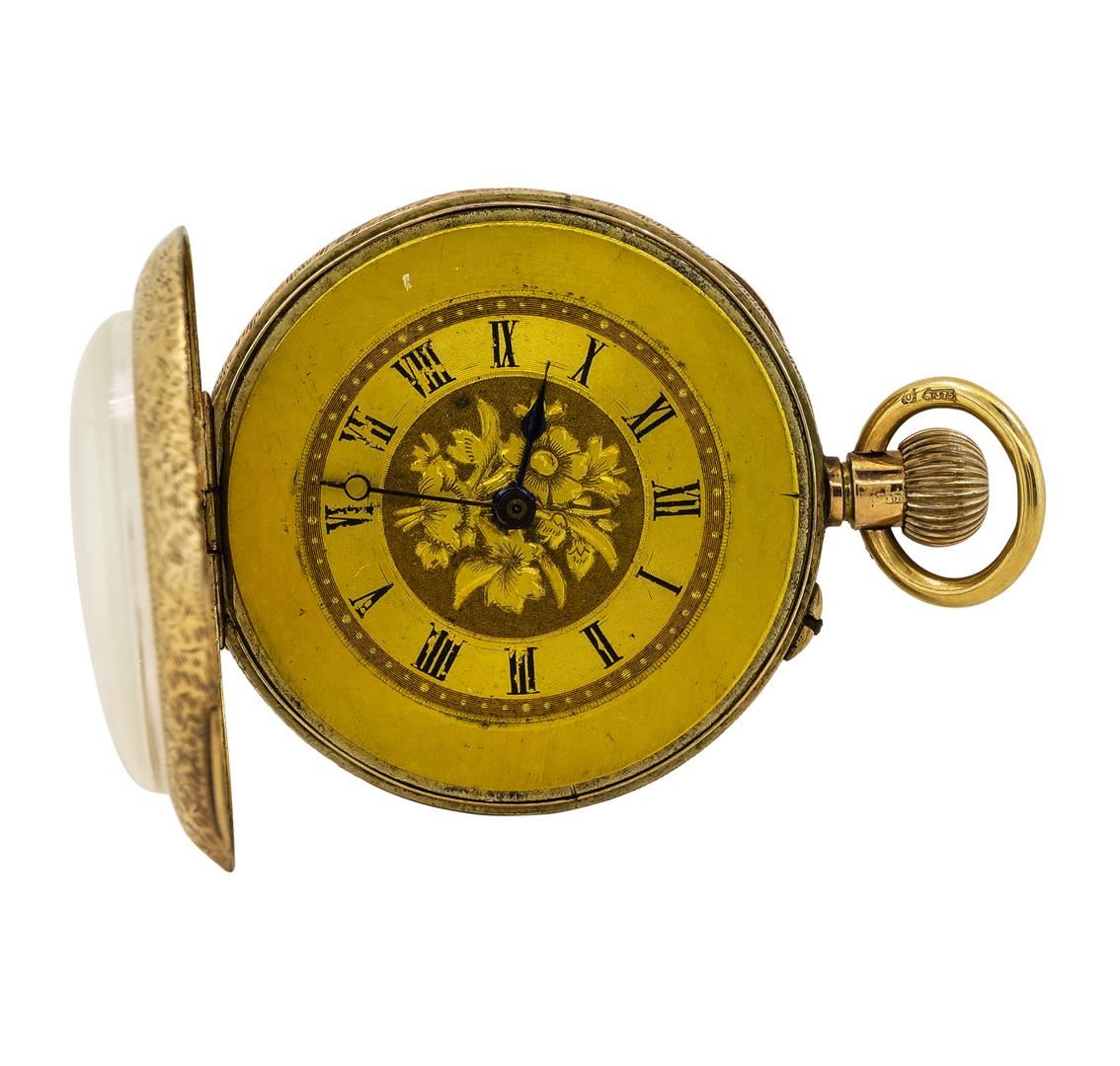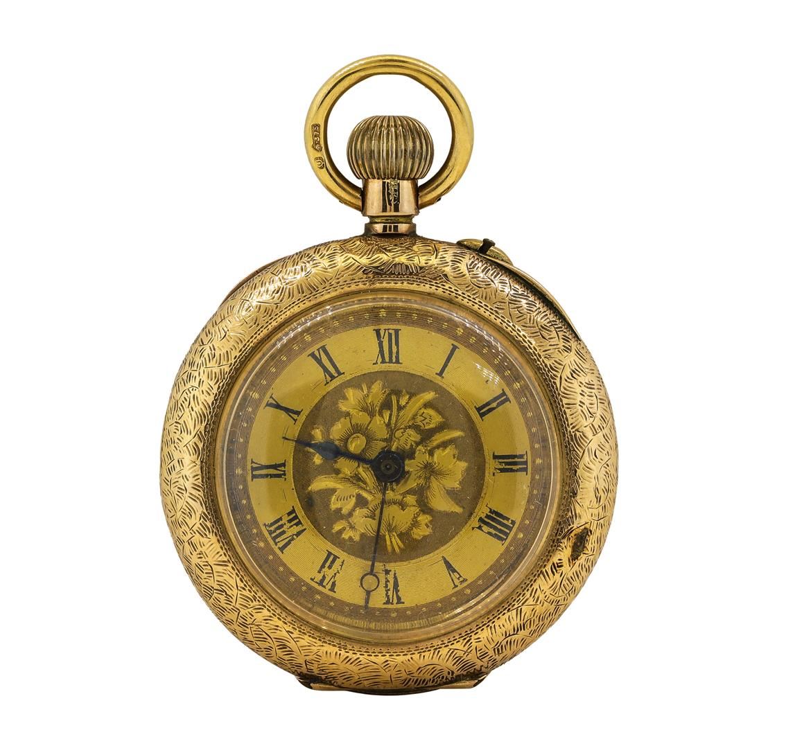 One Antique 9KT Yellow Gold Pocketwatch. Total Weight of Watch: 25.81.