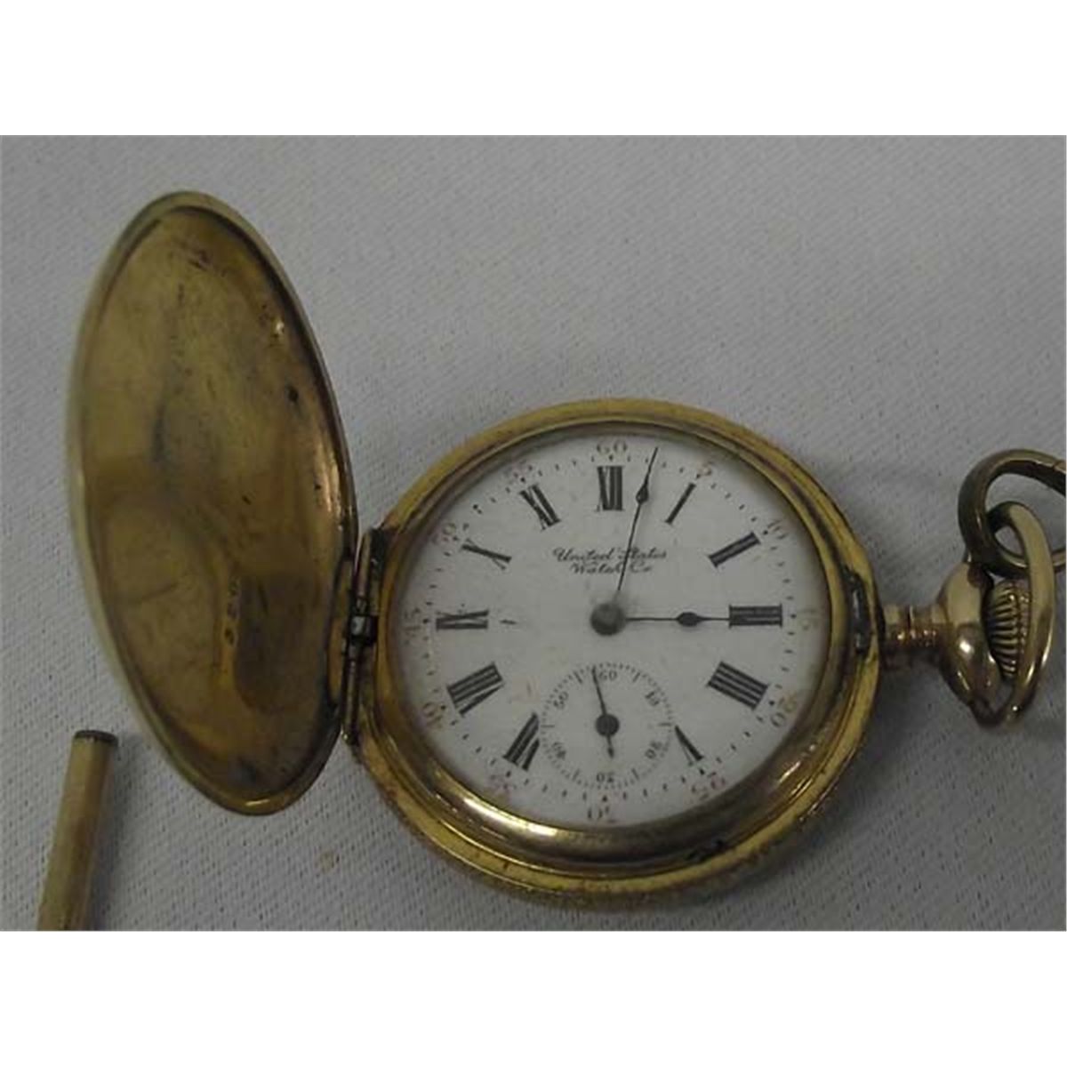 Antique Pocket Watch & Chain. Does not run. Inside of the watch says: ''United States, Watch Co.''. Watch measures approx. 1 1/3'' diameter. The chain has some damage. Buyers Pay Actual Shipping and Handling Charges(see terms and conditions for more information).