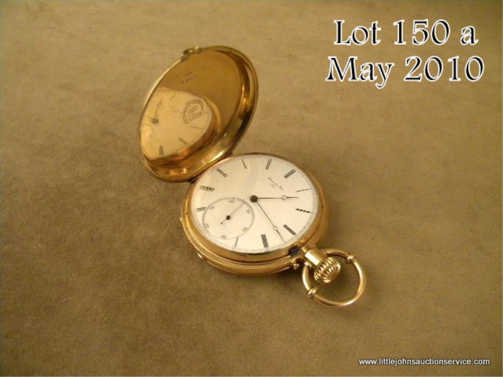 Antique Pocket Watch with movement by Montandon Frers, Loc le Paris, marked on movement and dial both fine quality highly jeweled movement. 18K gold hallmarkded case with maker's name in stamps. hand engraved "presented to Geo. W. Glass by theEmployees of the A.V.R.R.Co. Dec. 21, 1870". Inscription is in cover and a glass dust cover protects works. Shows adjustments for fast and slow in English on interior. By tradition a Railroad Company Presentation. Worth Researching,a very collectible piece!! Approx. 1 oz. plus of 18K Gold. Est. $1,000-3,000