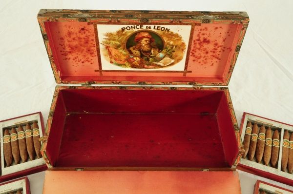 With original 100+ year old cigars cigars & paper inserts. Rare to find on in tact with cigars and paper inserts.