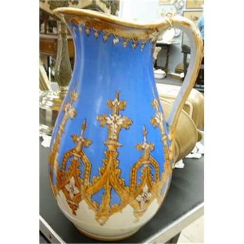</font></strong>This is an exquisite antique Old Paris porcelain pitcher decorated with gold detail and a vibrant blue background. </font>