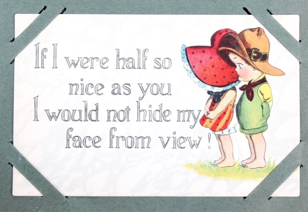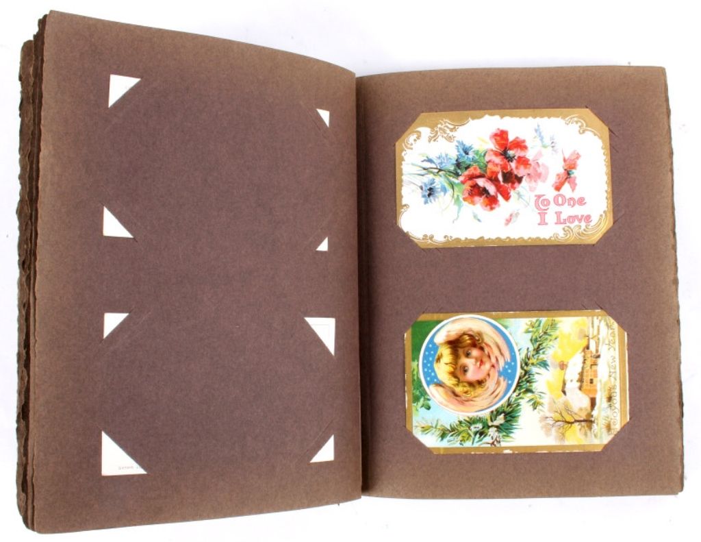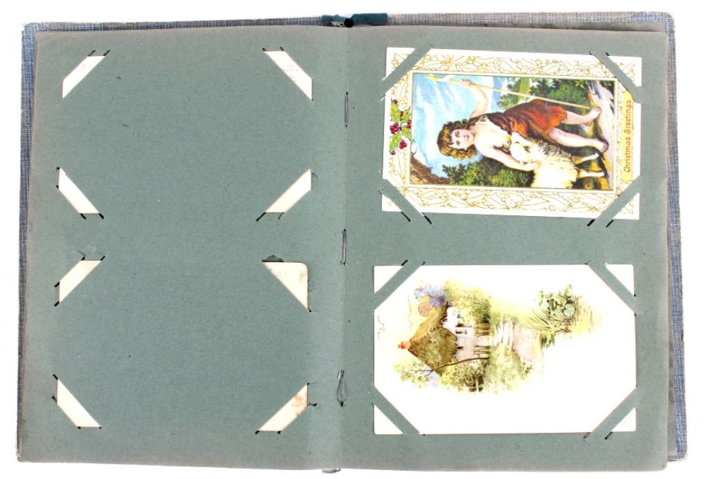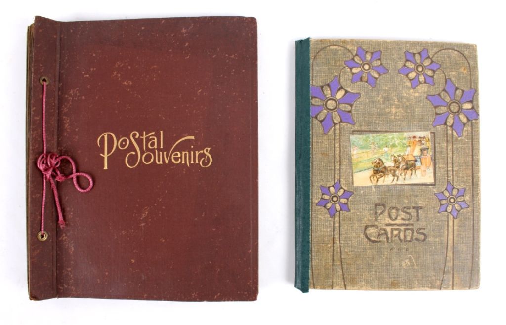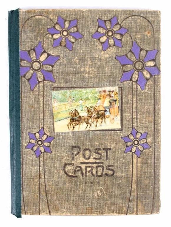 This is a set of antique post card albums. The post cards range from happy birthday, holiday, and get well. The cards are in good condition and are great collectors items. The larger album measures 11"x9".