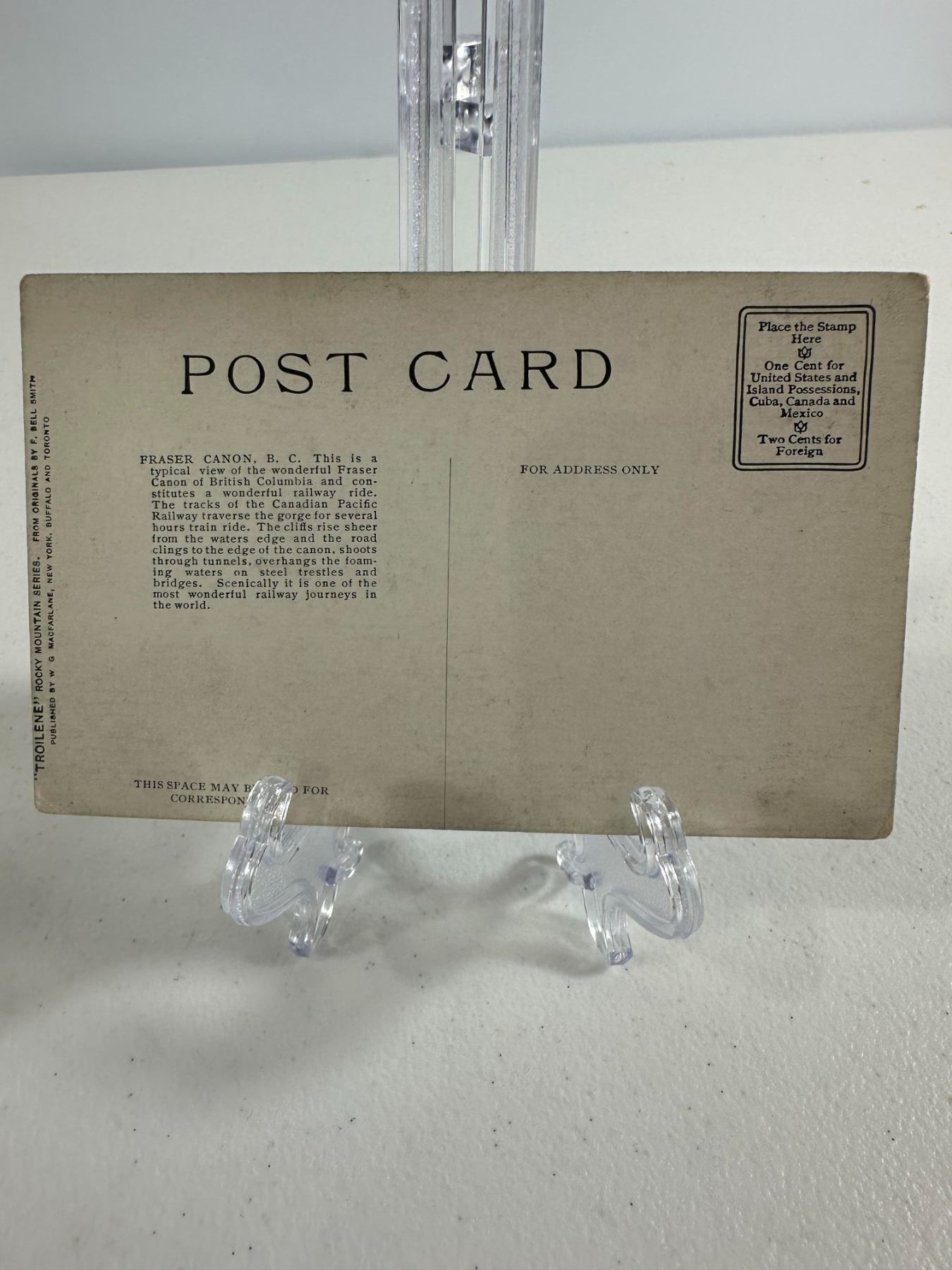 Early postcard Fraser Canon, B.C. Dramatic canyon and river view. Condition: Good; minor corner wear and faint scuffs.