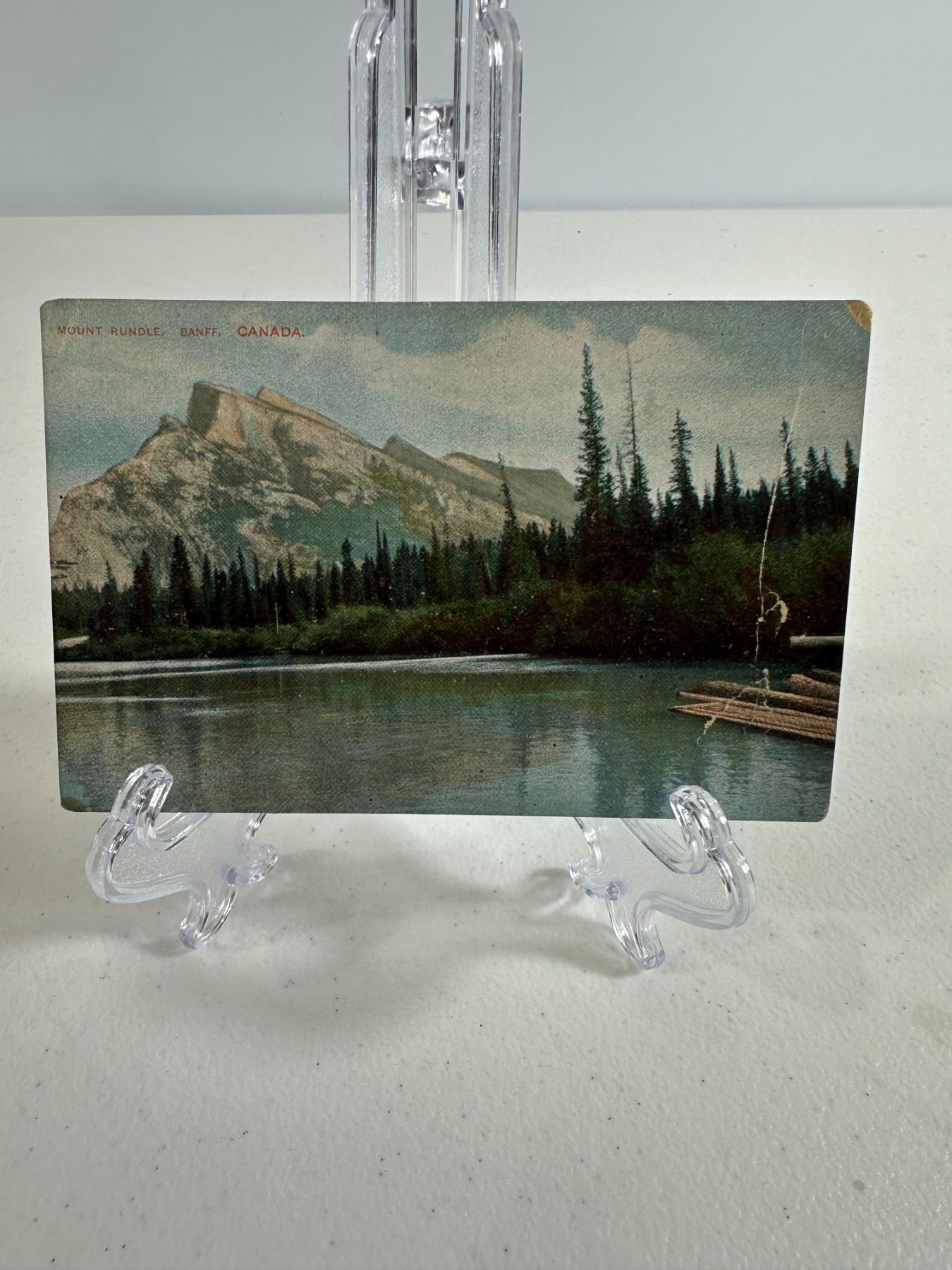Early postcard  Mount Rundle, Banff, Canada.  Pastel-toned mountain and lake. Condition: Good; slight crease and edge wear.