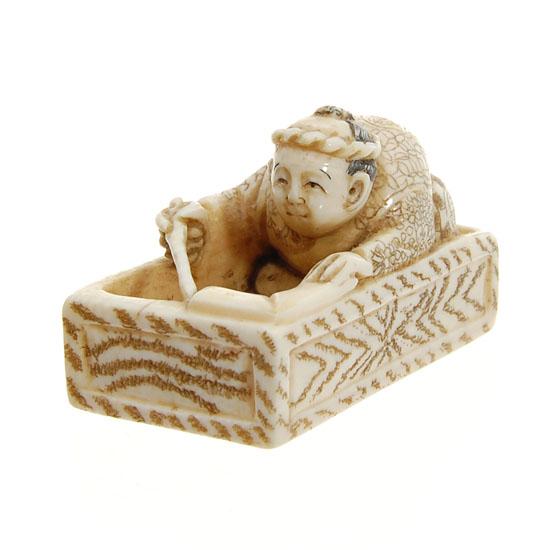 Excellent museum quality antique pre-ban elephant ivory netsuke. Carpenter at work - NOTICE: International shipping is not available for this item. This Item will only be shipped within the United States. This item was legally imported into the United States. Ivory from elephant.