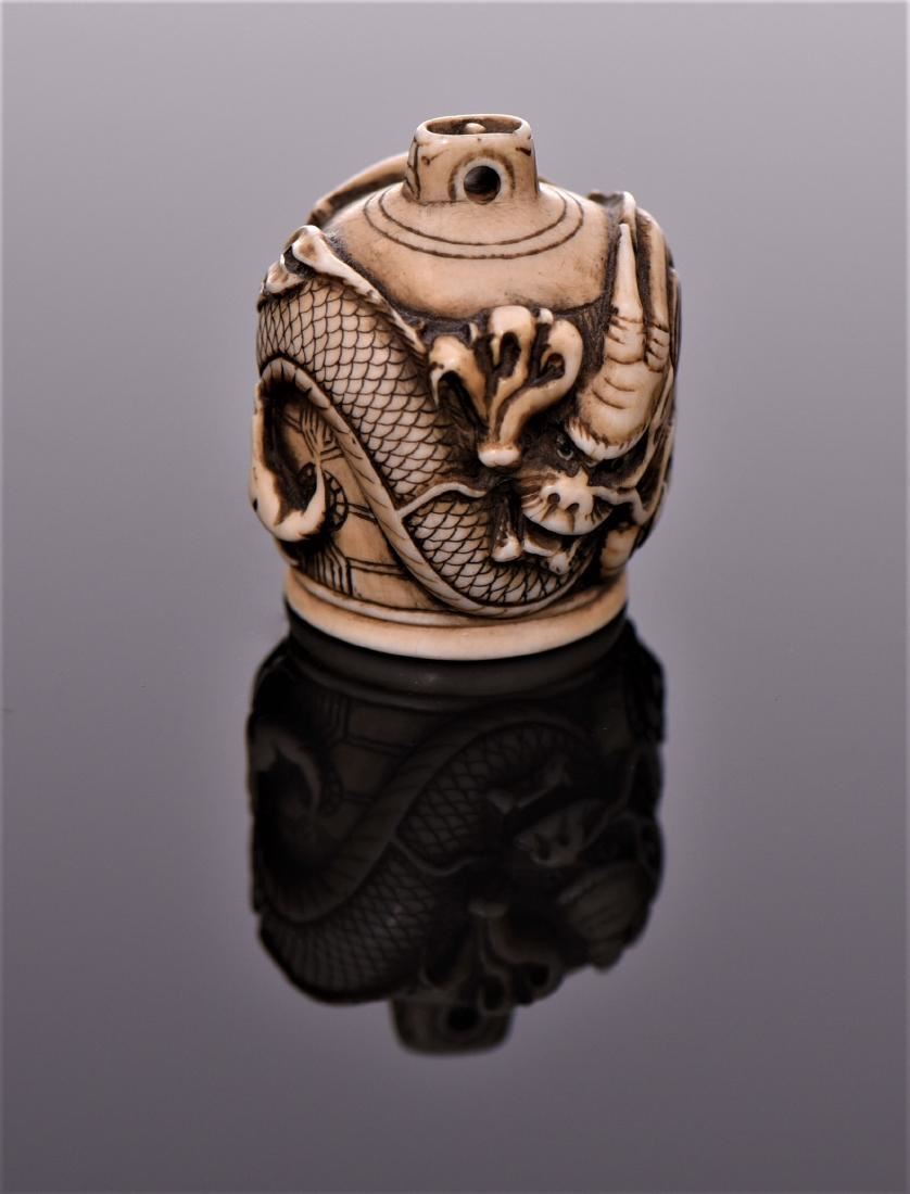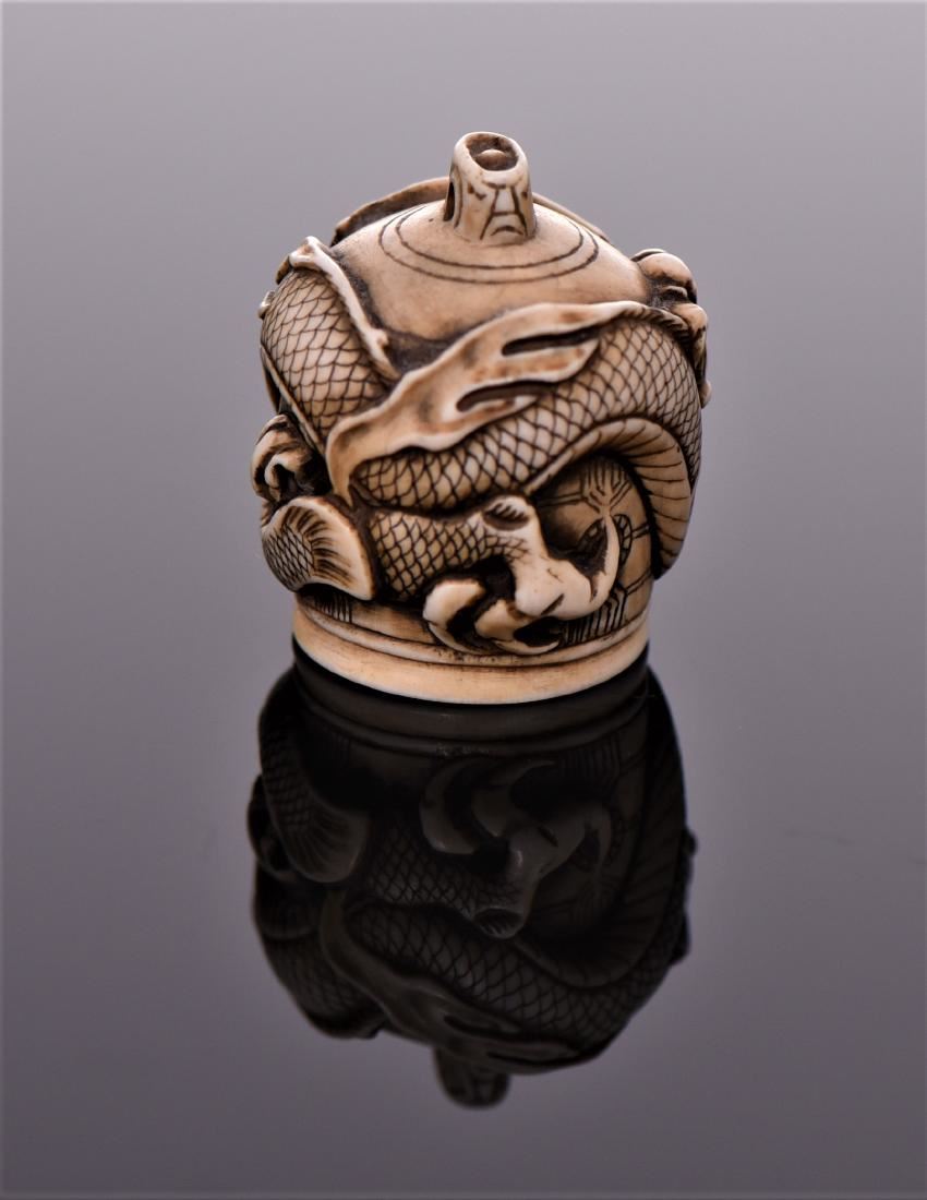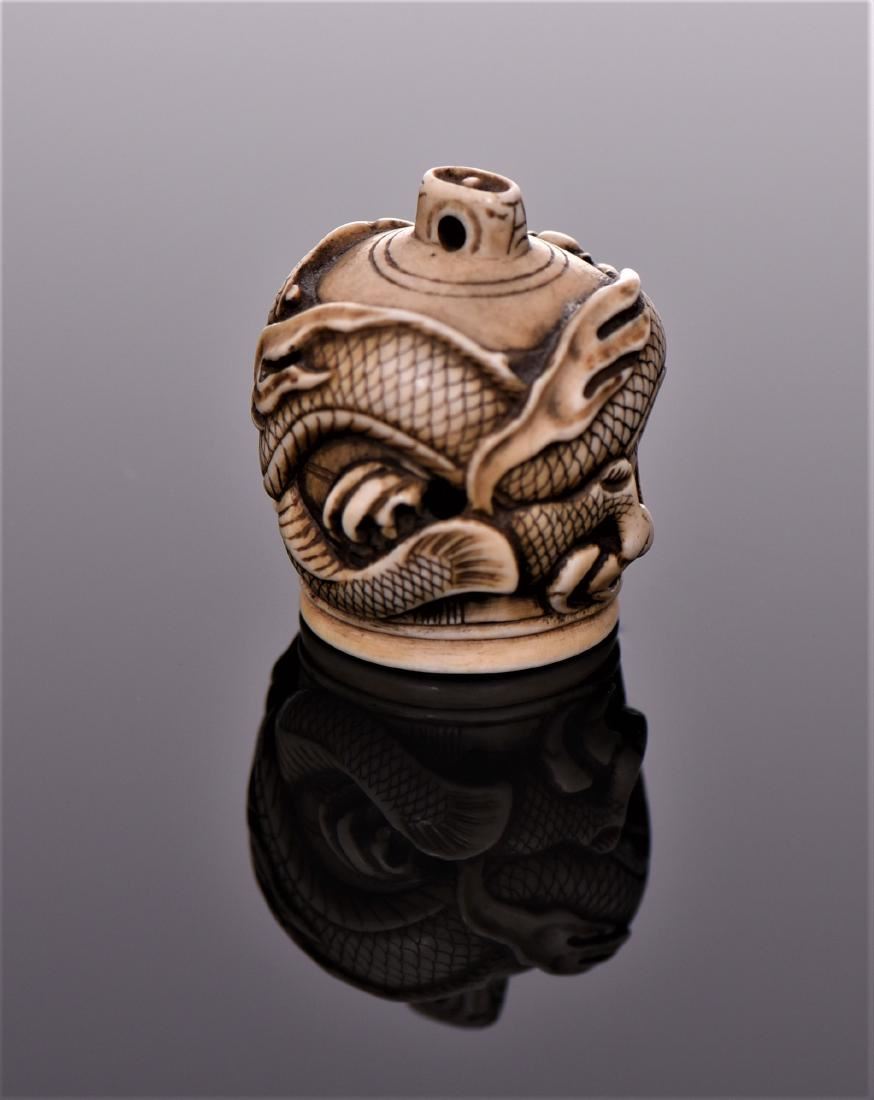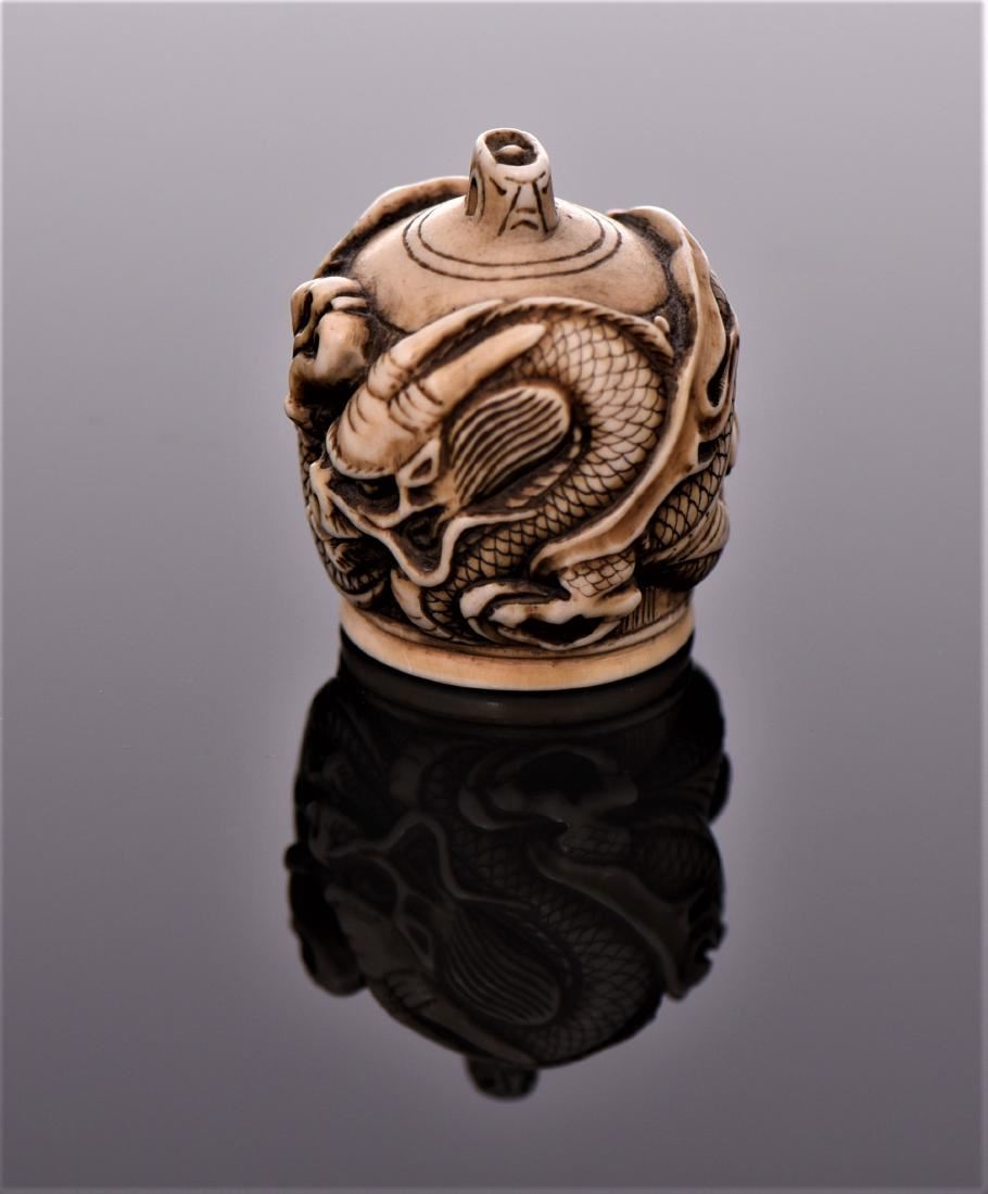 Antique Pre-Ban Japanese Flying Dragon Signed Netsuke. NOTE: Please be aware of US laws when bidding. This item cannot be shipped to certain US states and outside the United States. As a condition of the sale, all buyers agree to comply with all Federal regulations on ivory and the rules of the U.S. Fish & Wildlife Service â??CITESâ? as it relates to transport. It is the purchaserâ??s sole responsibility to obtain any and all licenses and/or certificates, as well as any other requirements. Estimated more than 100 yrs old. Japanese art covers a wide range of art styles and media, including ancient pottery, sculpture, ink painting and calligraphy on silk and paper, ukiyo-e paintings and woodblock prints, kiri-e, kirigami, origami, along with a myriad of other types of works of art. The earliest complex art in Japan was produced in the 7th and 8th centuries in connection with Buddhism. In the 9th century, as the Japanese began to turn away from China and develop indigenous forms of expression, the secular arts became increasingly important; until the late 15th century, both religious and secular arts flourished. Painting is the preferred artistic expression in Japan. Until modern times, the Japanese wrote with a brush rather than a pen, and their familiarity with brush techniques has made them particularly sensitive to the values and aesthetics of painting. With the rise of popular culture in the Edo period, a style of woodblock prints became a major form and its techniques were fine tuned to produce colorful prints. The Japanese, in this period, found sculpture a much less sympathetic medium for artistic expression. Japanese ceramics are among the finest in the world and include the earliest known artifacts of their culture. In architecture, Japanese preferences for natural materials and an interaction of interior and exterior space are clearly expressed. (Wikipedia) Size and/or Weight: See Measurement Photo. (Photos Represent The Lot Condition.)