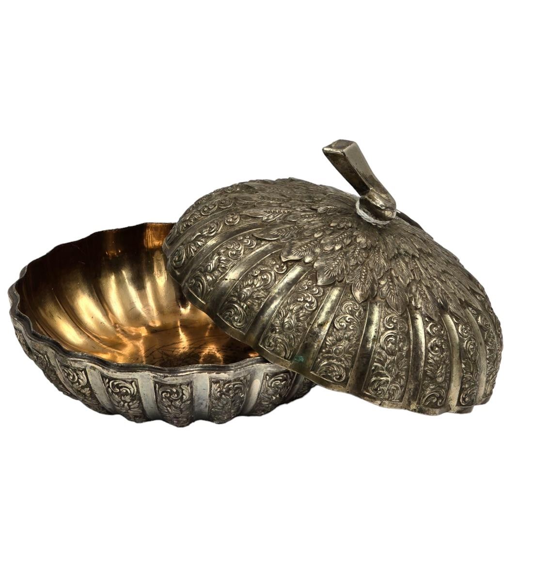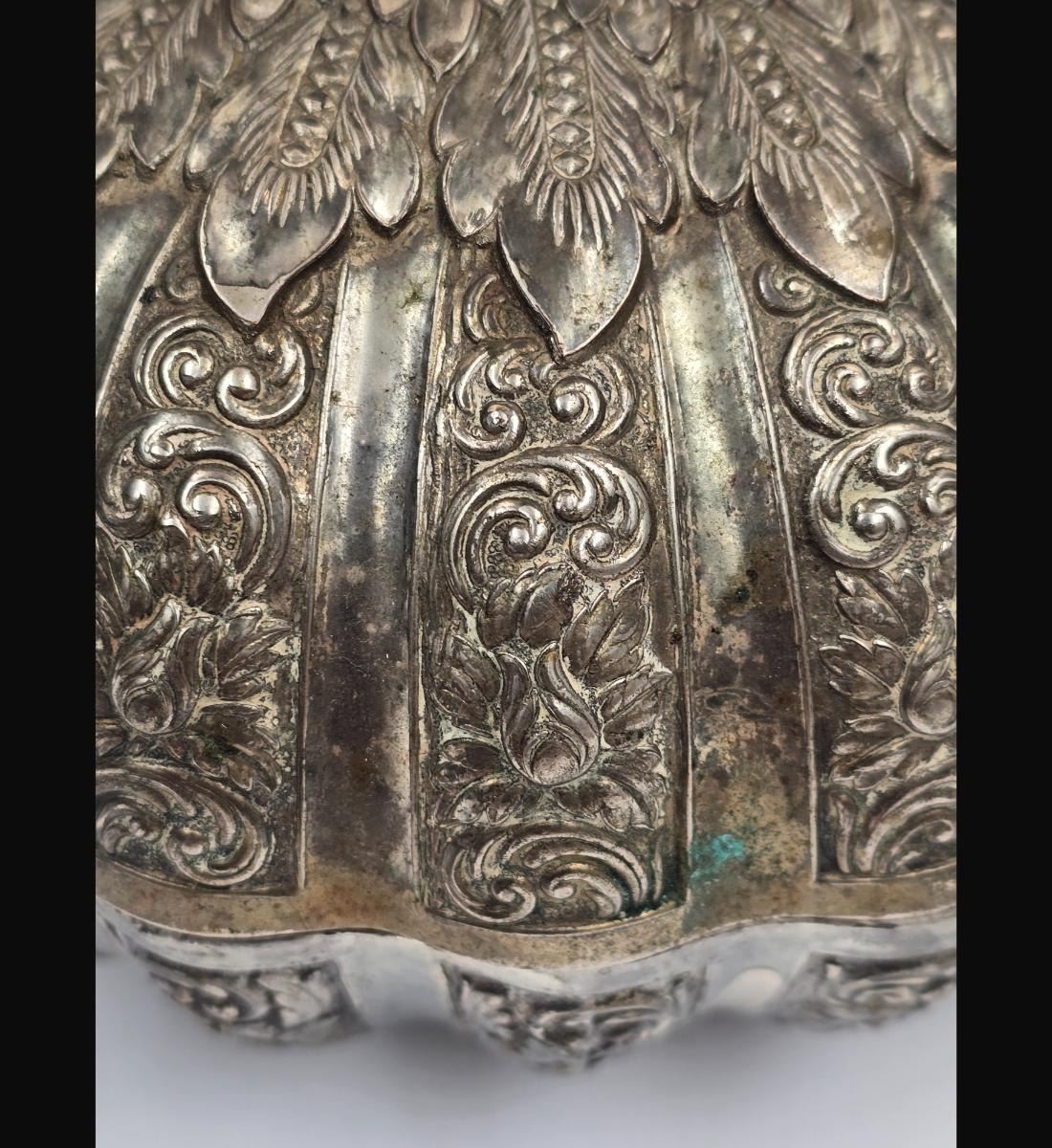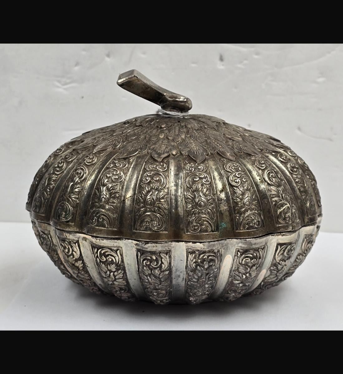 Antique Pumpkin Shaped Silver Box Probably Low Grade Silver. Measures approx 5" X 6.5". Provenance: One Person Private Estate Central Florida.