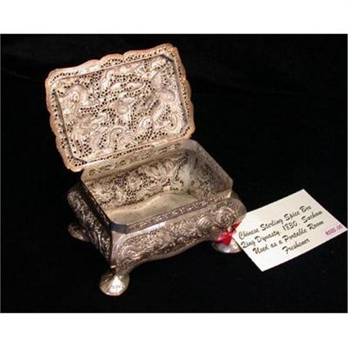 <tr><td>Title:Antique Qing Chinese Sterling Silver Spice Box </td></tr>