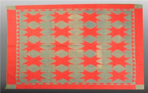 Description Green quilt with red star pattern. Some staining and fading. Condition (Good). Size 80" x 67".