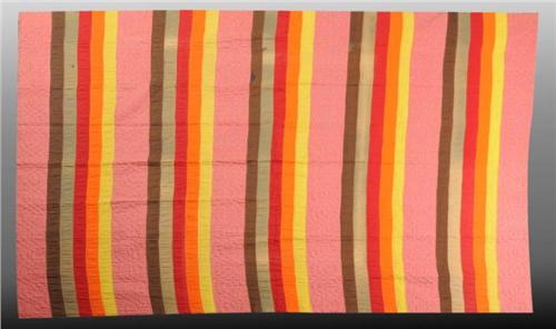 Description Striped design with pink border. Dark and light staining. No tears or holes. Condition (Good). Size 76" x 69".