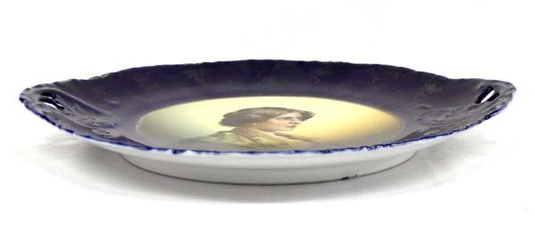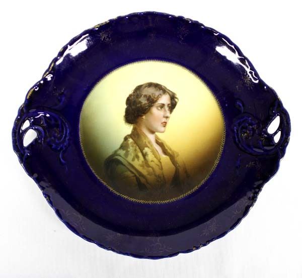 Antique R. C. Versailles Bavaria Cobalt Blue China Plate, measures 11.75''D x 10 5/8'', double handled, gold gilt trim and accents, #3334, hallmarked, hallmark c. 1891-1906 Rosenthal Green Underglaze, beautiful piece