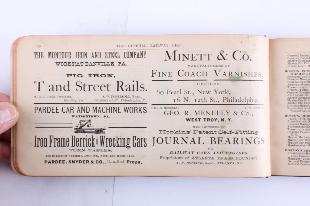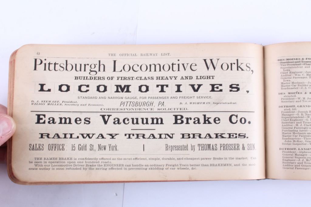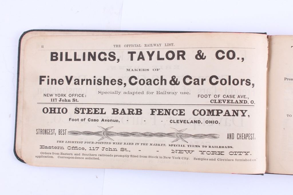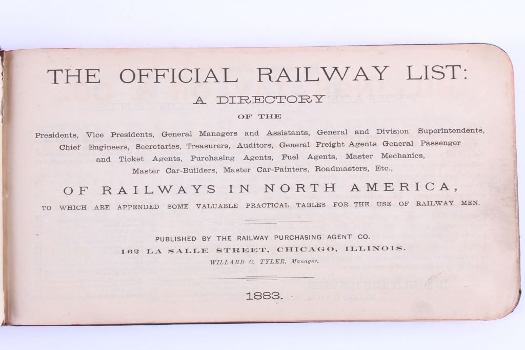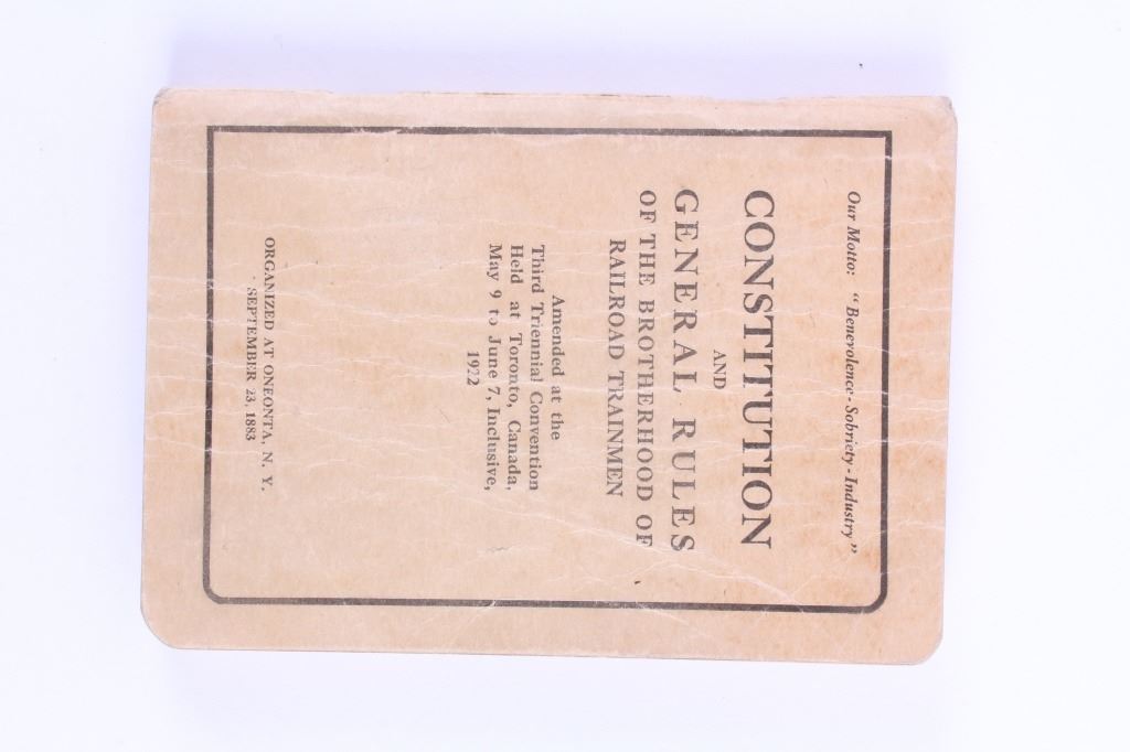 This is a collection of antique railroad books. Included are three books from the Brotherhood of Railroad Trainmen from 1919, 1922, and 1925. Also included is "The Official Railway List 1883". All four books are in good overall condition. The largest measures 4.5" x 8.5".