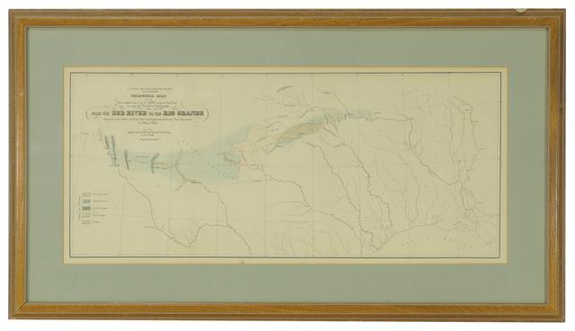 Circa 1854, "From the Red River to the Rio Grande" - produced by the War Department in Texas - William P. Blake. 10" x 23" (16" x 29" framed)