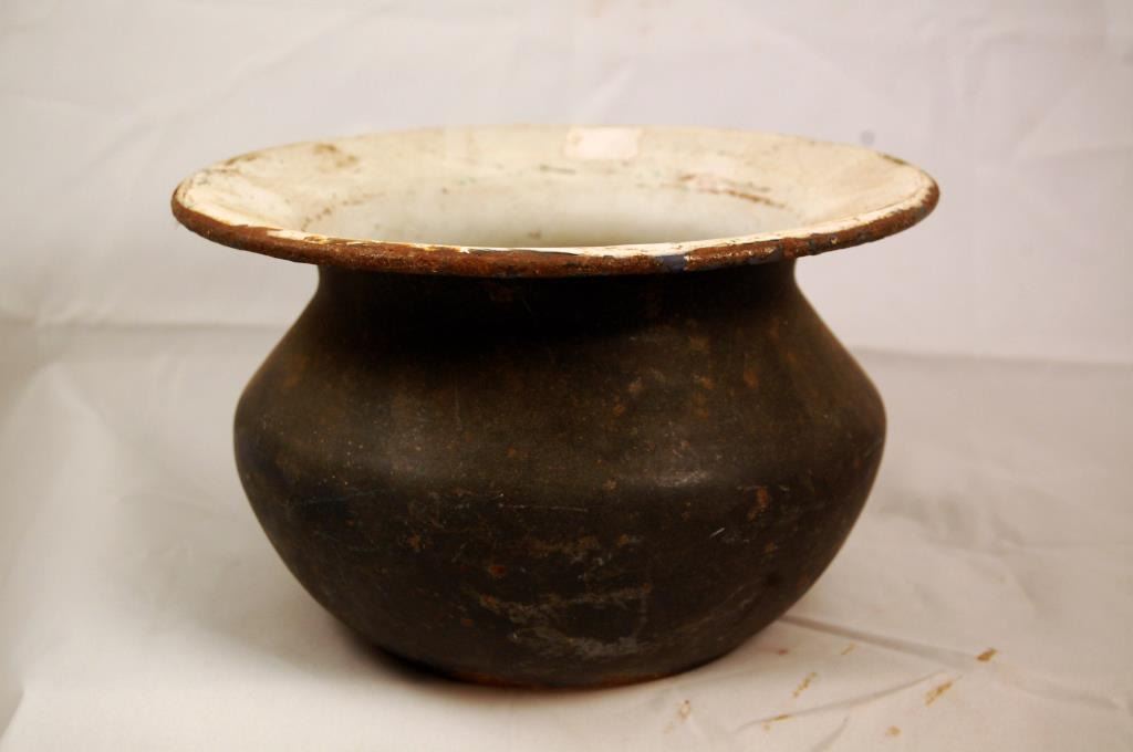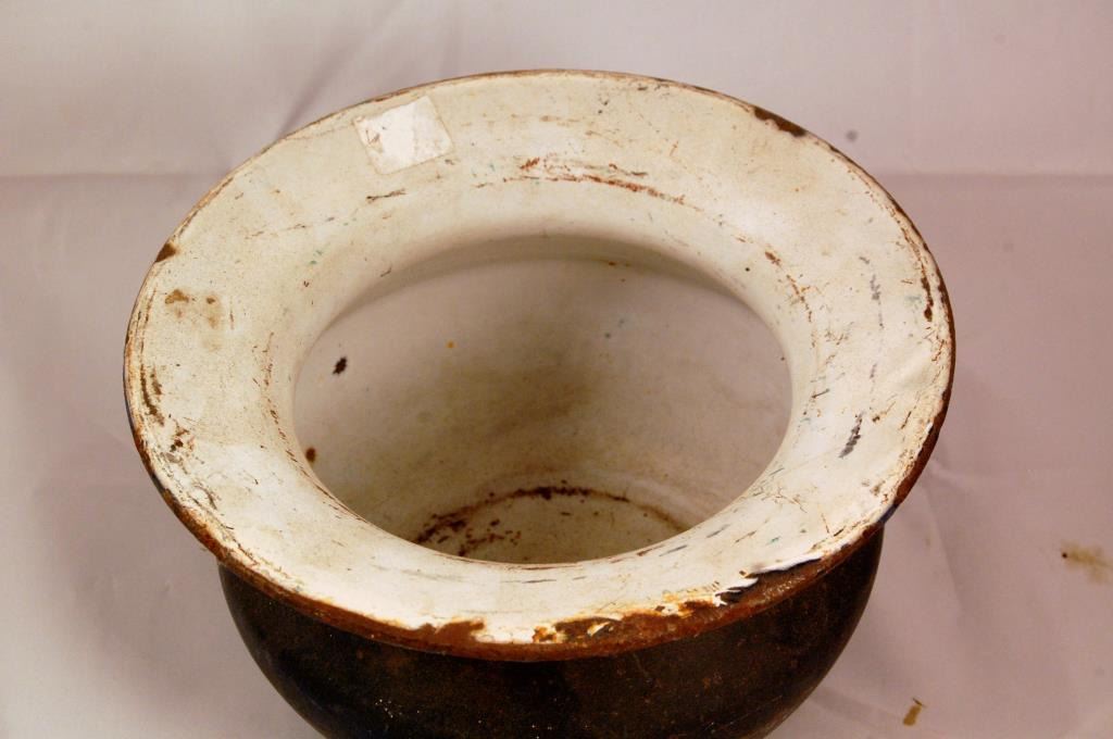 Antique railroad spittoon, cast iron, porcelain coated. About 9.5"