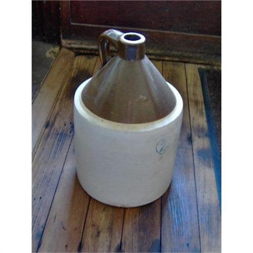 This salt-glazed brown and cream provisions #2 shoulder jug is a Red Wing Pottery piece and is approximately 75 years old. </em></td>