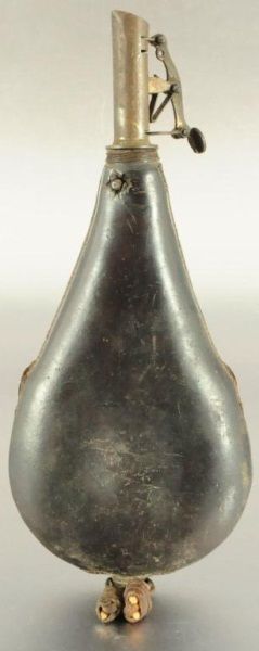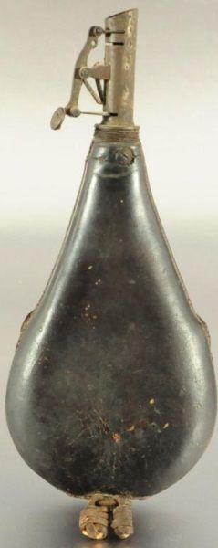3 old reloading tools, 6 Winchester No.12 Brass Shotgun Shells with leather holder, gunpowder flask & gunpowder tin. Sold as one collection.