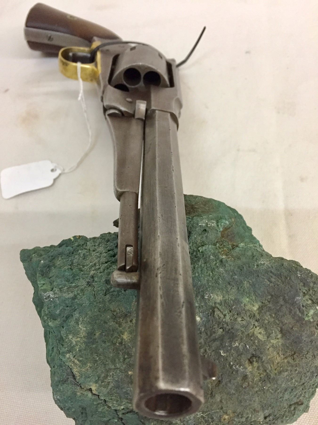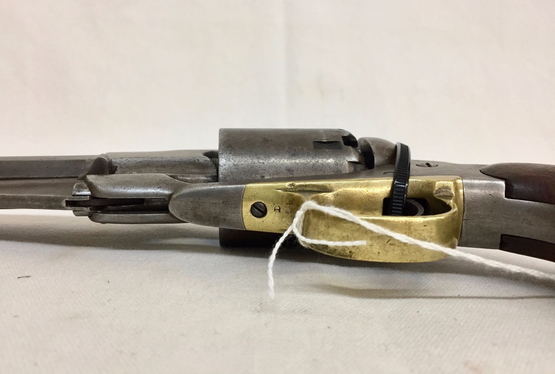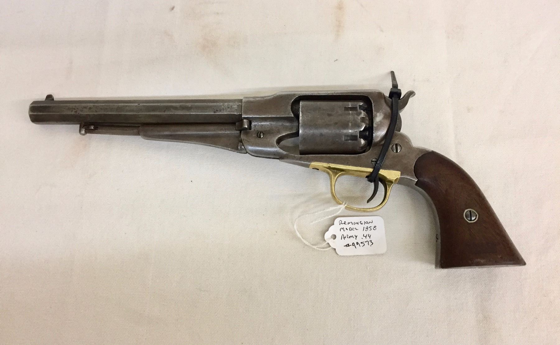 Description: Antique Remington New Model Army .44 Revolver. We are selling this as an antique / curio item and not warranted safe to shoot. No FFL paperwork required on this antique pistol which was made pre-1898. We will only ship this item to the United States and only where it is legal to do so. Please know your local/state laws before buying. Maker: Remington. Approx. Age: Circa late 1860’s. Size: Approx. 14” long overall x 5 1/8” high. Condition: Fair for its age, wear expected. Barrel has been replaced. Seems to function and cycle properly, but we have not tested it in any way. Please look closely at the pictures - they are an important part of our description. Shipping: There will be a $10 handling / packaging fee for shipping this lot. The actual cost of postage will be added on top of that.