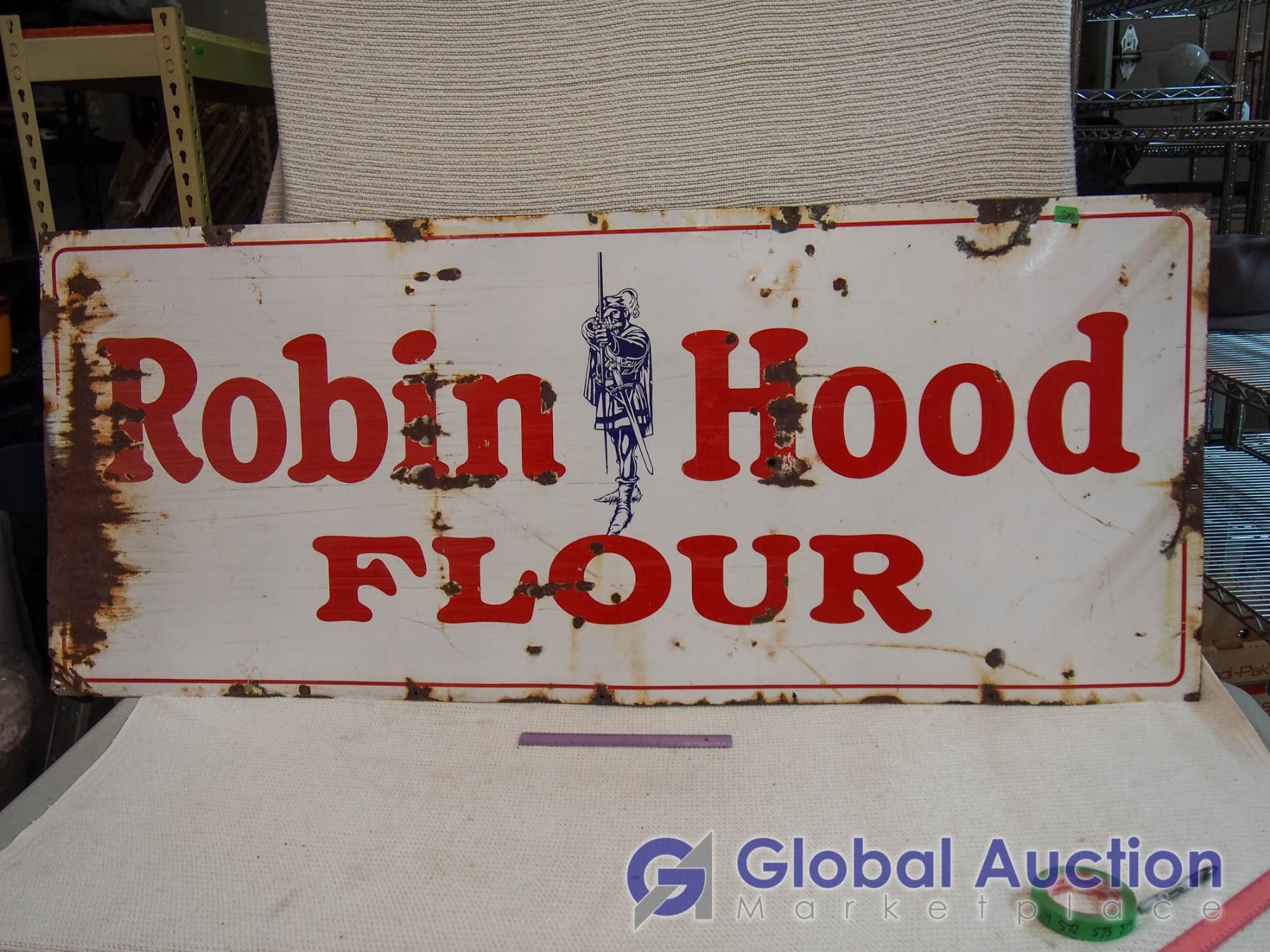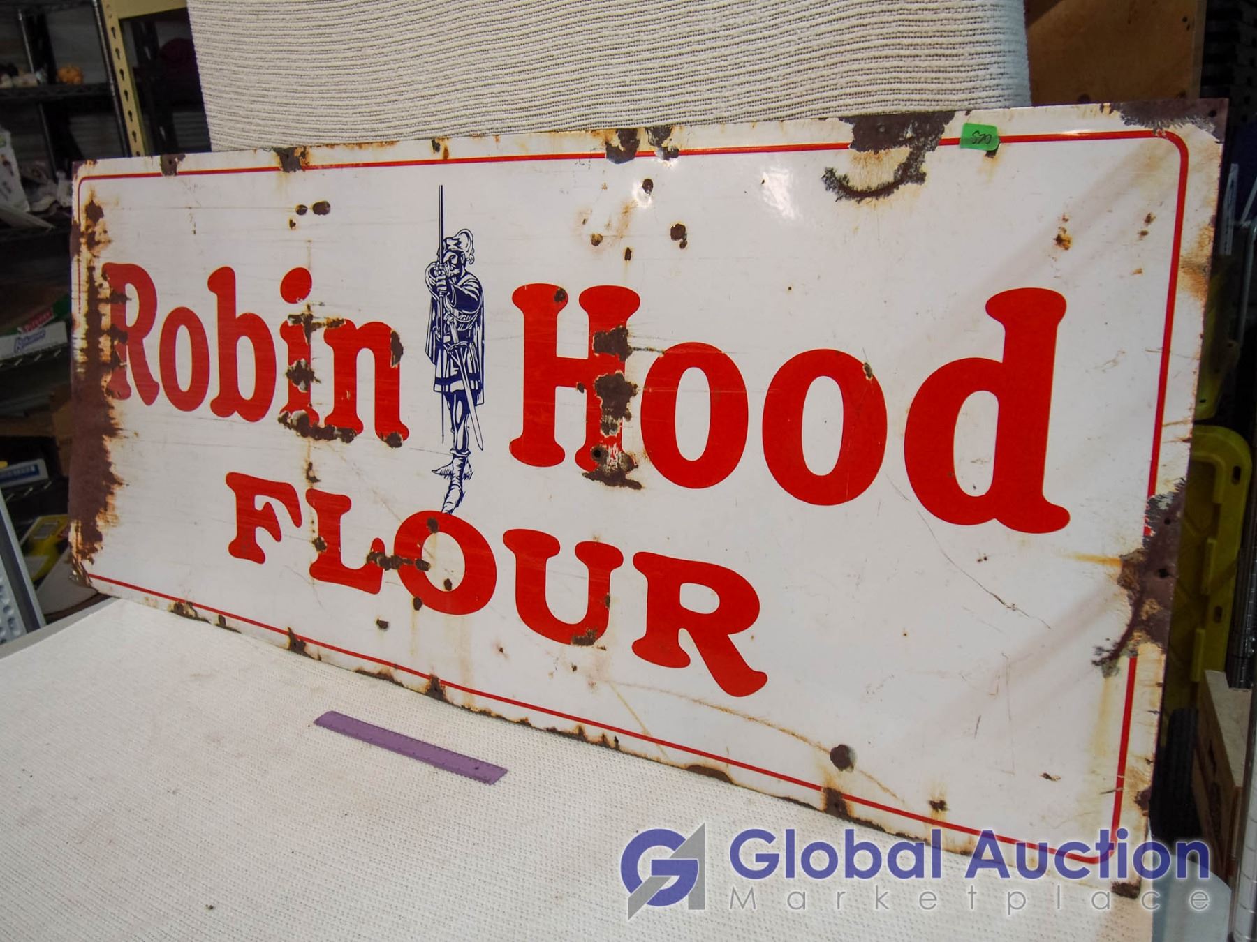 Antique Robin Hood Flour Porcelain Sign, 72"x30"