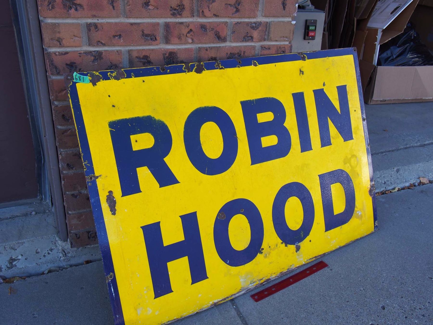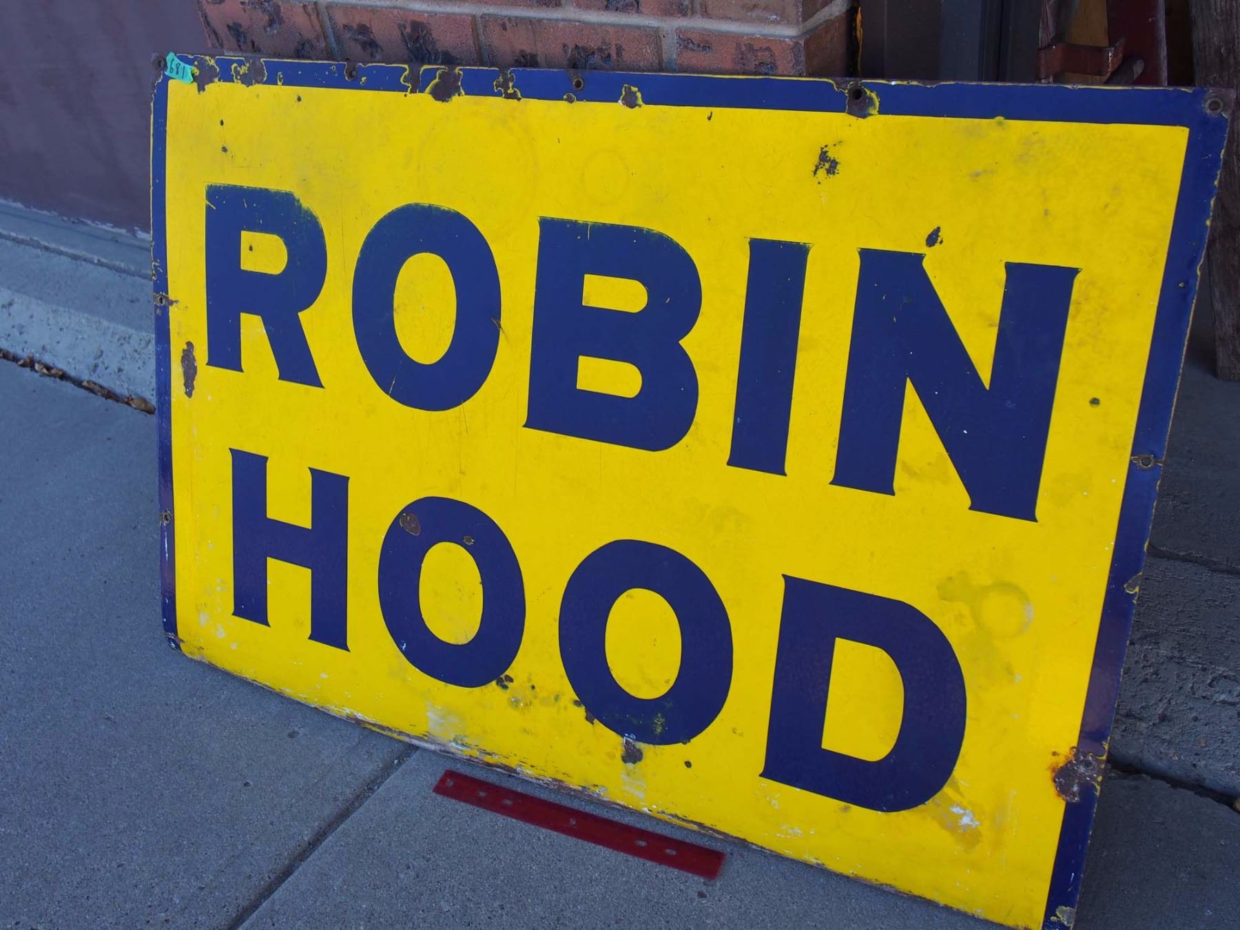 Antique Robin Hood Porcelain Sign, 27"x40"