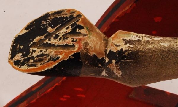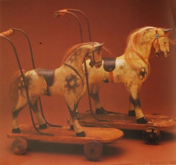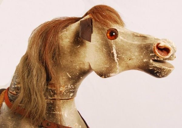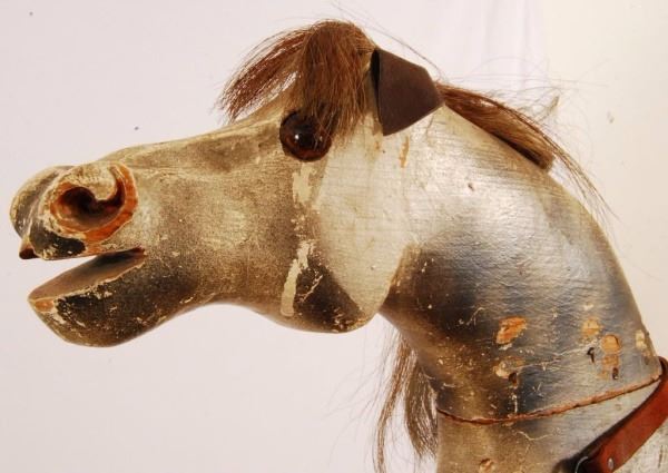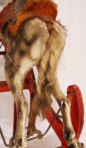 Stenciled, Glass eyes, with real horse hair. 12-1/2" x 28" x 36"