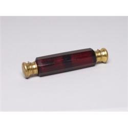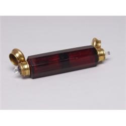 Antique Ruby Glass Double Ended Scent Bottle Gilt Brass Tops Minor Nick to Cut Crystal Edge