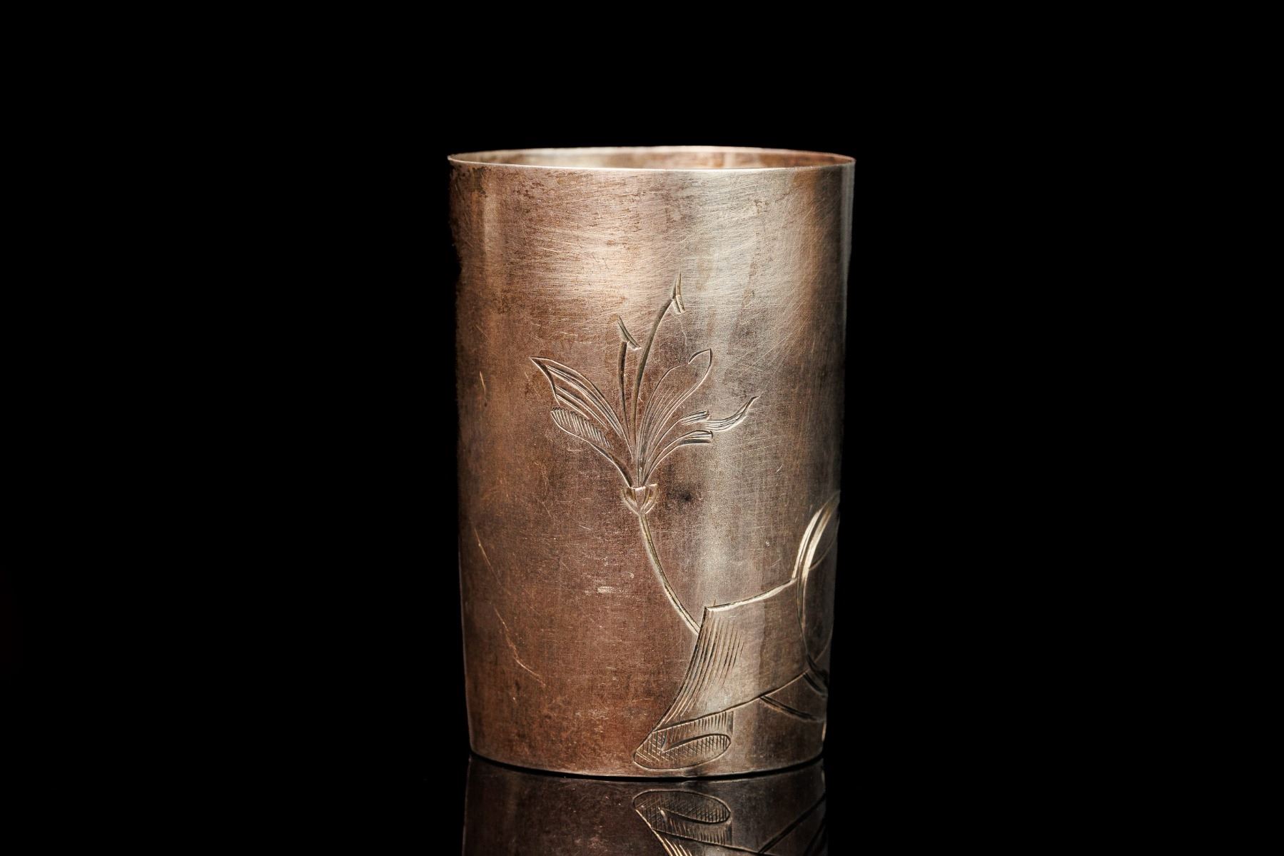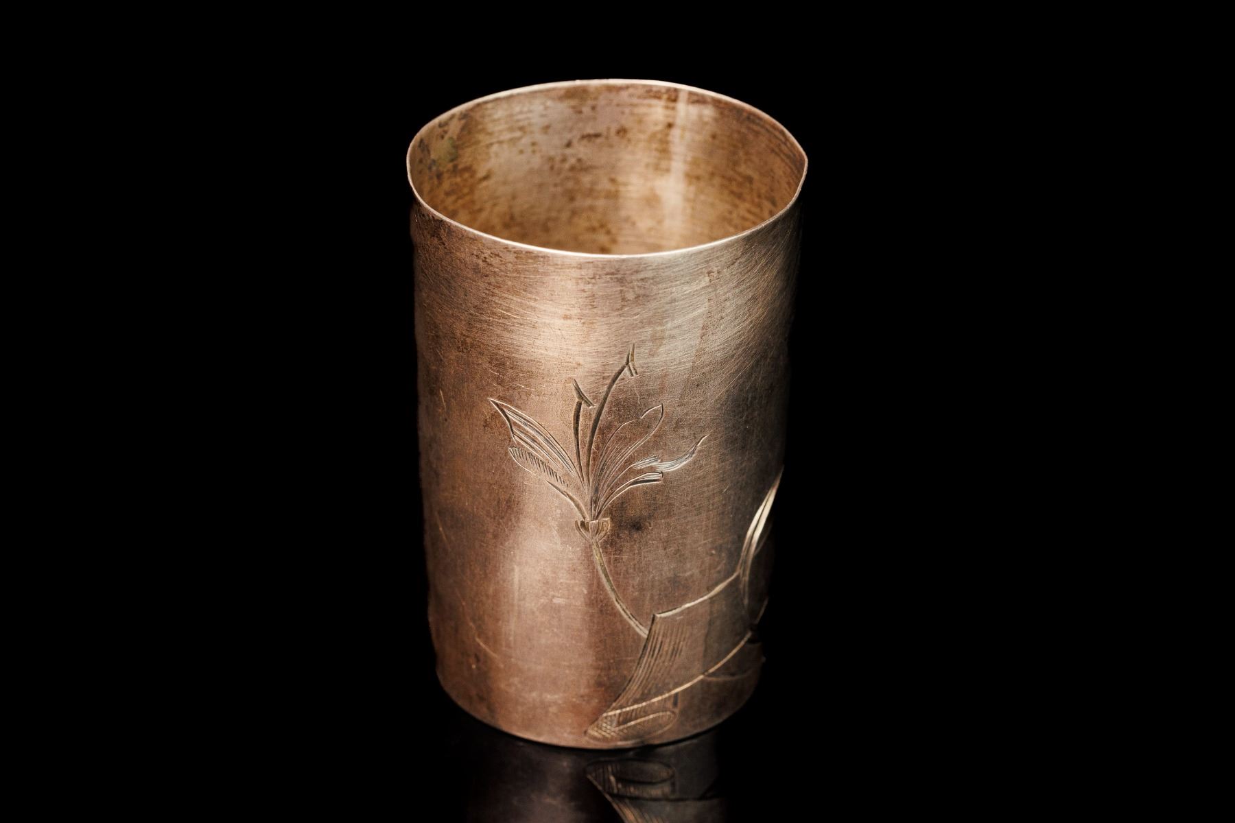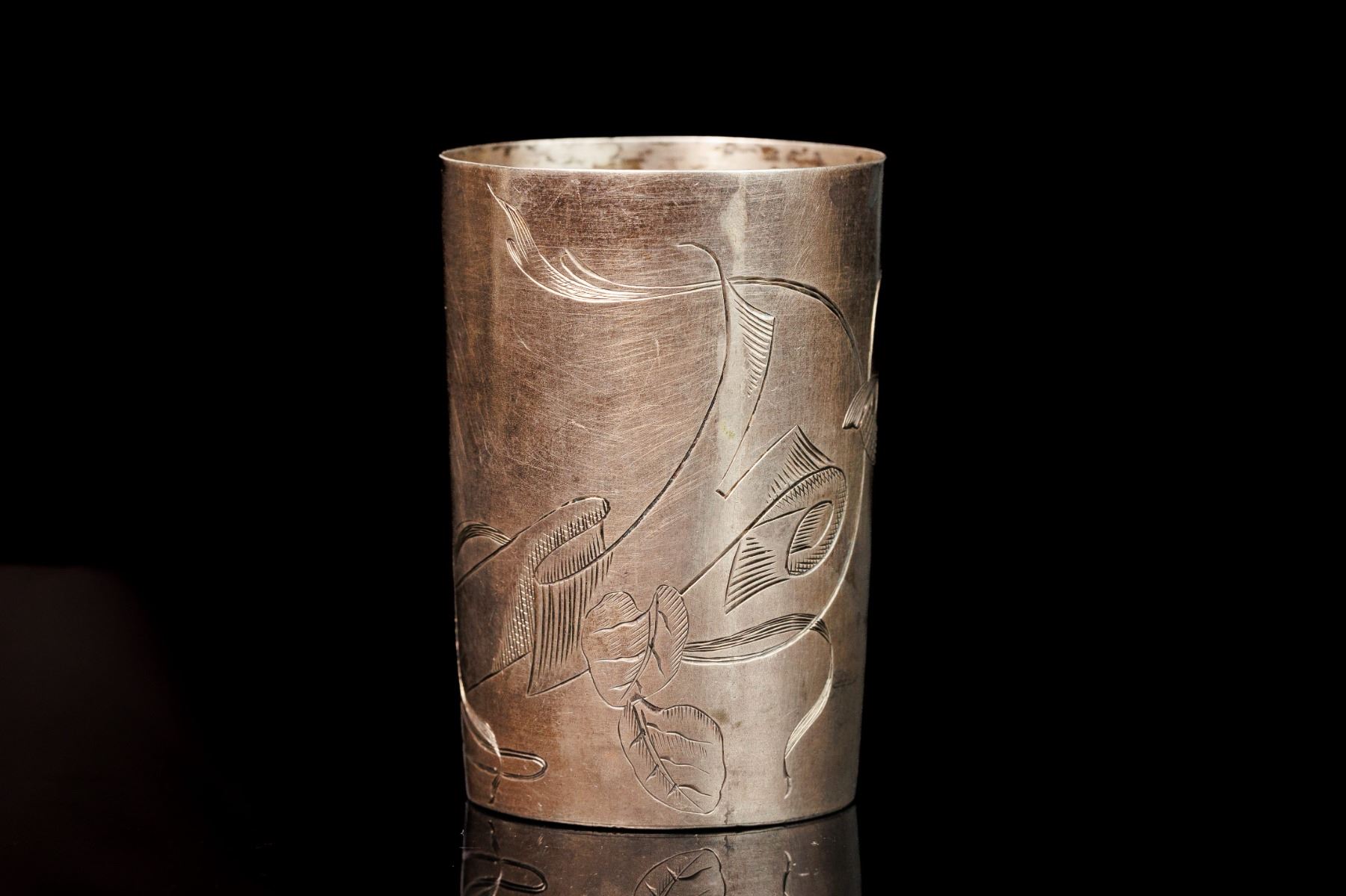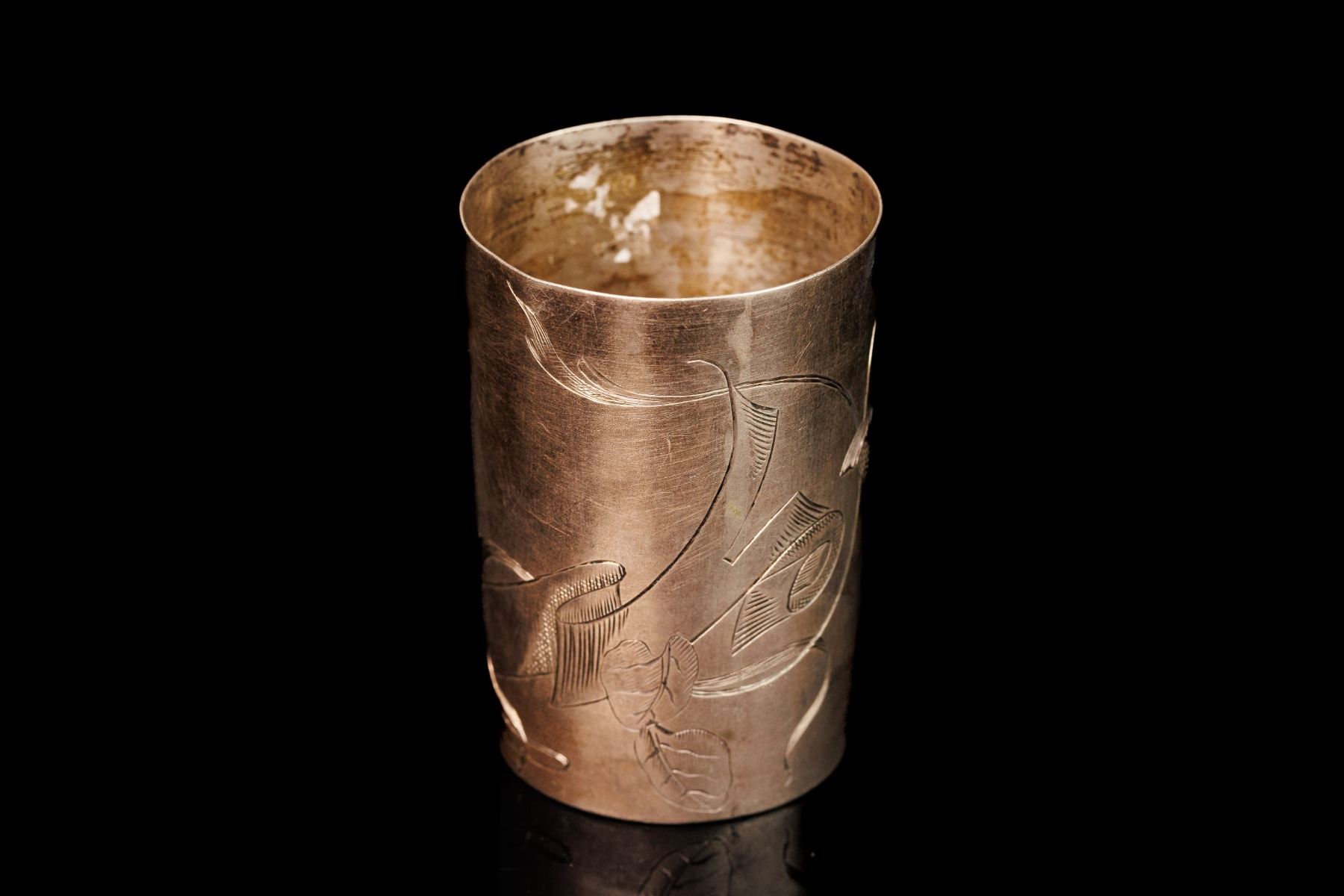 Charka with chiseled decoration, gilding interior. Silver 84, Moscow, Russian Empire. Early 20th century.