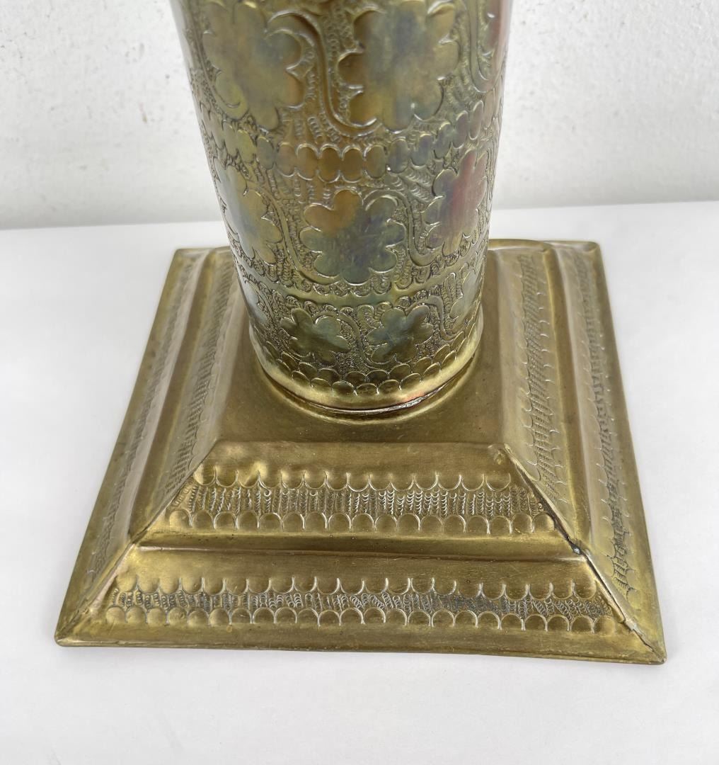 8 3/4" by 8 3/4" base. 12 1/4" diameter. 35" tall.