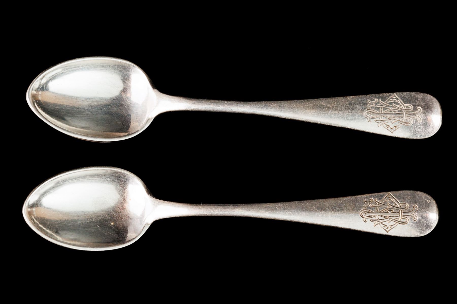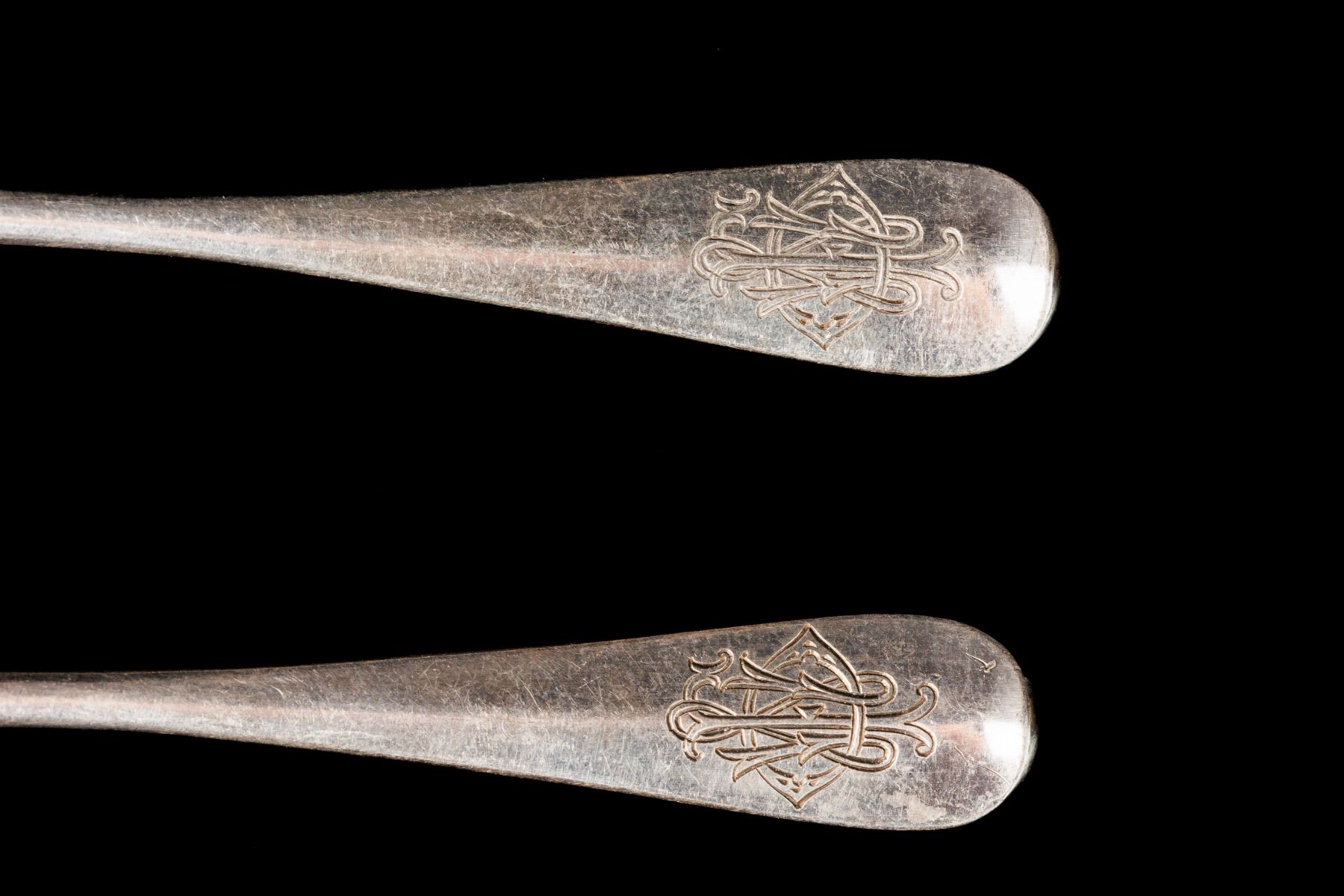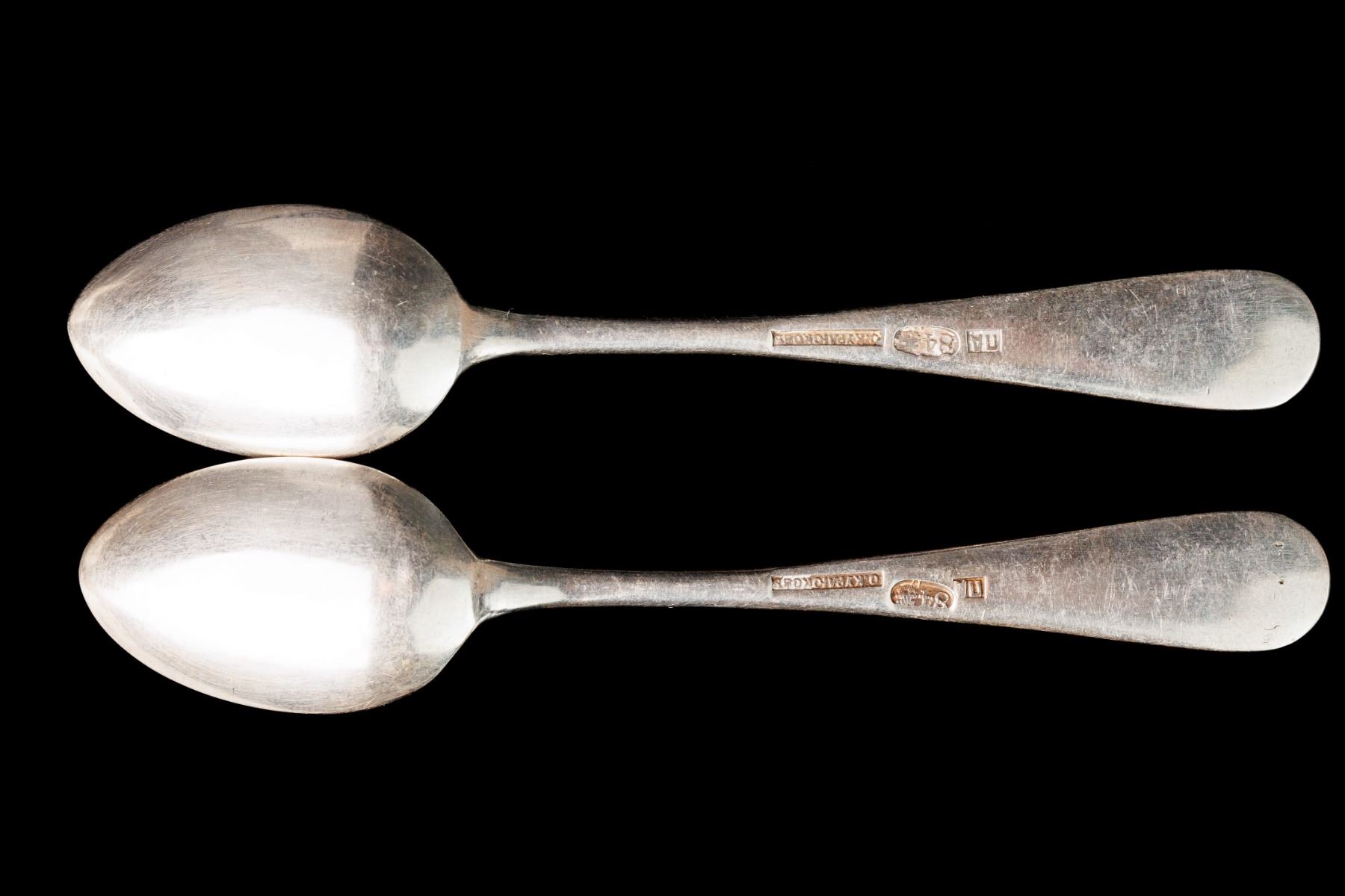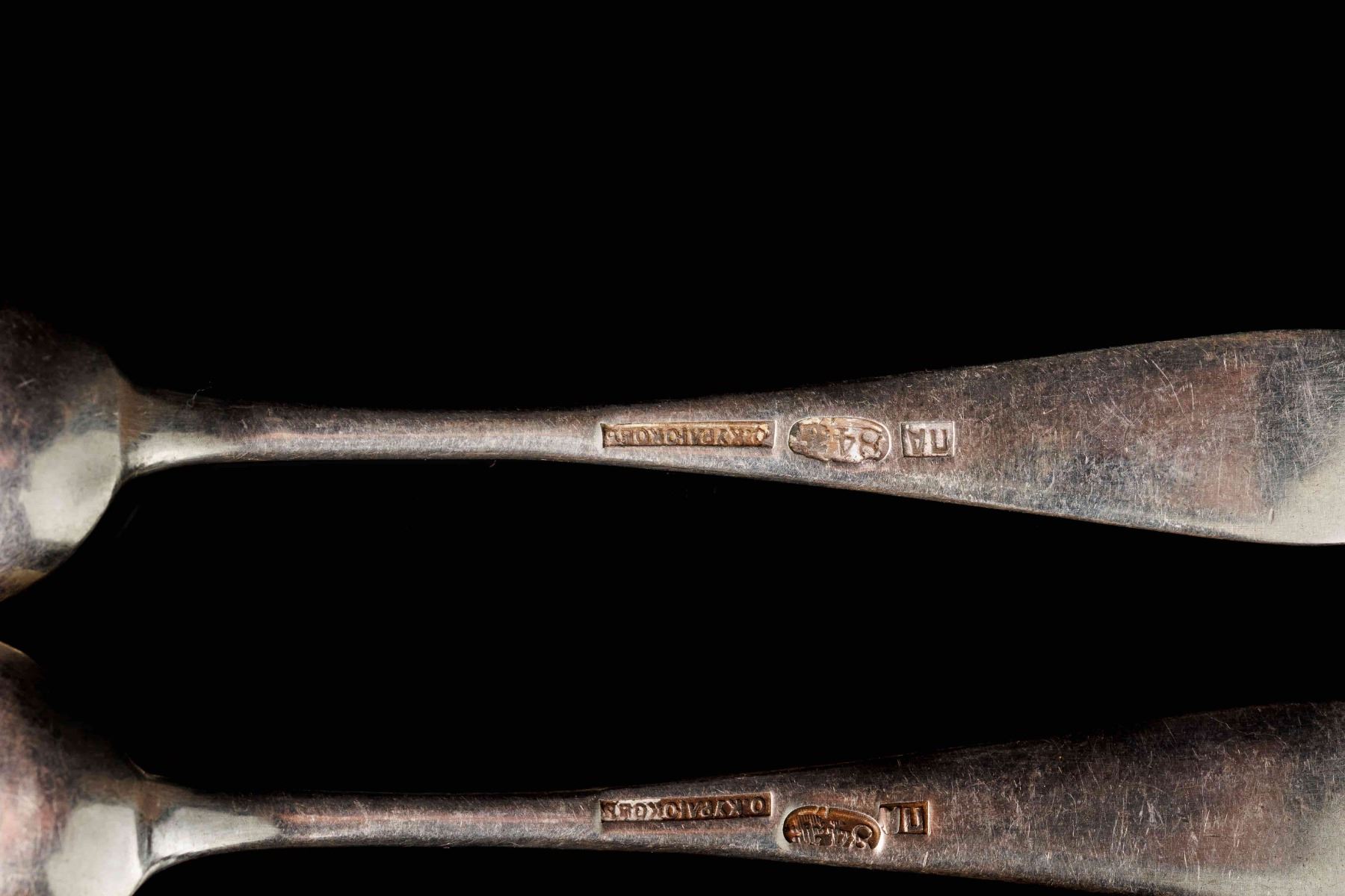 Two tea spoons, silver 84. Manufacturer - Orest Kurlyukov. Moscow, Russian Empire. The reign of Nicholas II. The size 10,5 cm and weight 36 gr.