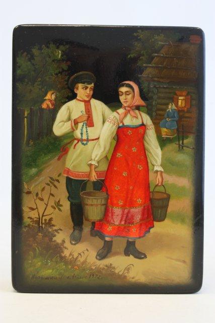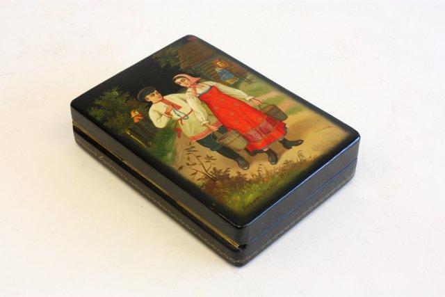 Antique Russian lacquered box artist signed